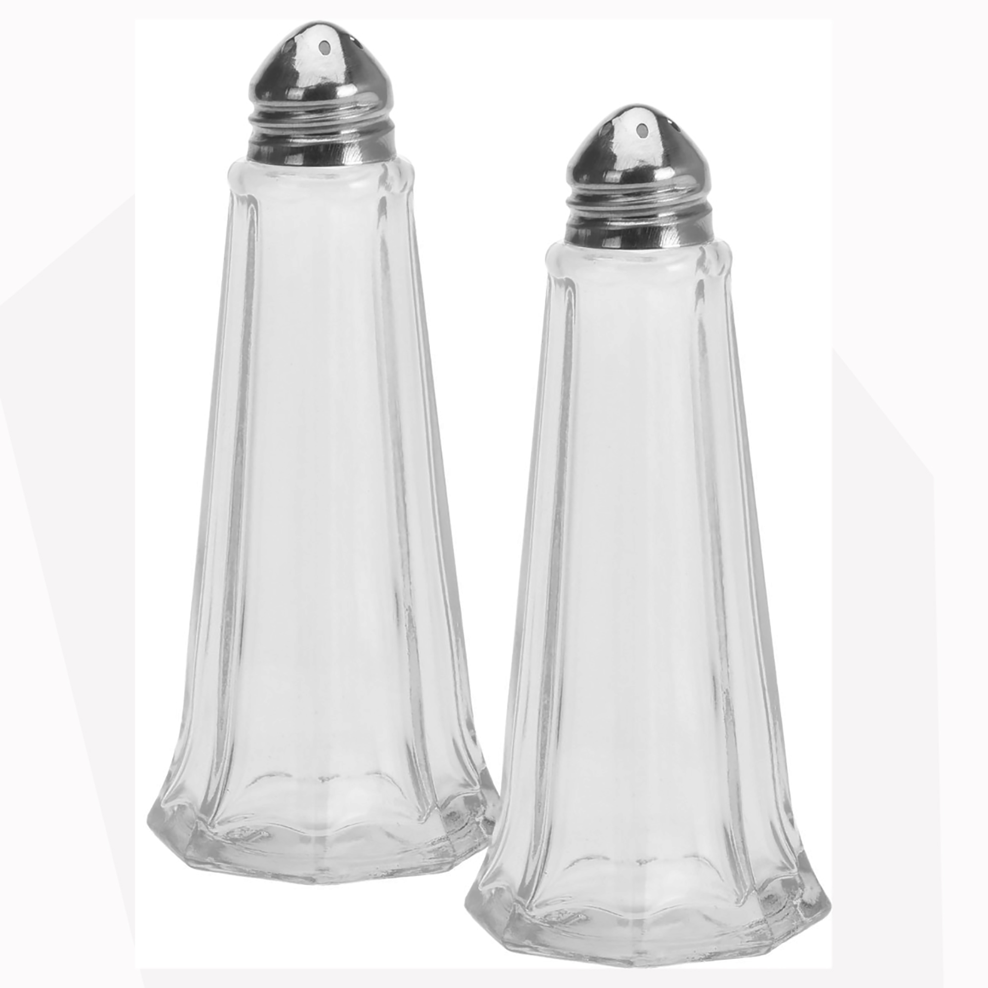 Elegante Salz- und Pfefferstreuer aus Glas in geschwungener und formvollendeter Optik aus massivem Glas. Der Schraubdeckel ist aus glänzendem Edelstahl. Die Streuer sind selbstverständlich spülmaschinengeeignet, bitte vorher nur den Deckel abschrauben. Unverzichtbarers Accessoire auf dem Tisch, ideal für die Gastronomie.