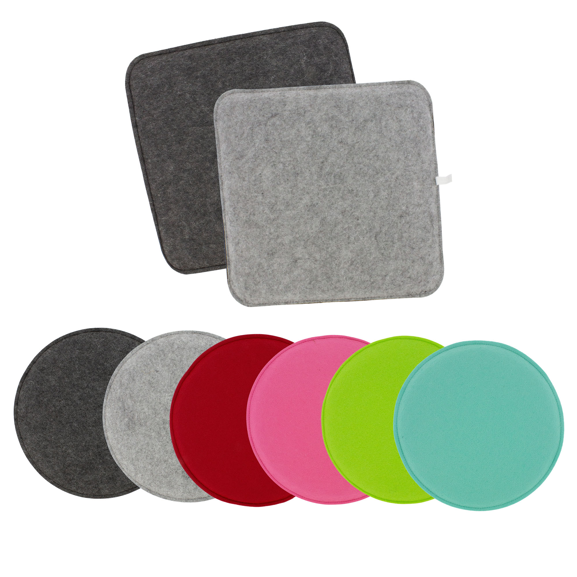Sitzkissen aus Filz in runder oder eckiger Optik