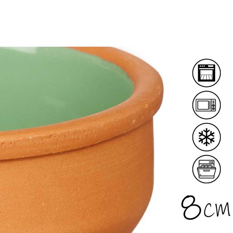 Diese hochwertigen Tonschalen mit farbenfroher Innen-Glasur sind sehr vielseitig einsetzbar. Die Cazuelas im mediterranen Stil können als Schalen zum Überbacken oder als Tapas-Schalen genutzt werden. Auch Creme Brülèe, Fingerfood, Desserts, Salate, Antipasti, Oliven sowie Müsli, Nachos und vieles mehr werden in diesen kleine Schalen stilgerecht und geschmackvoll serviert.