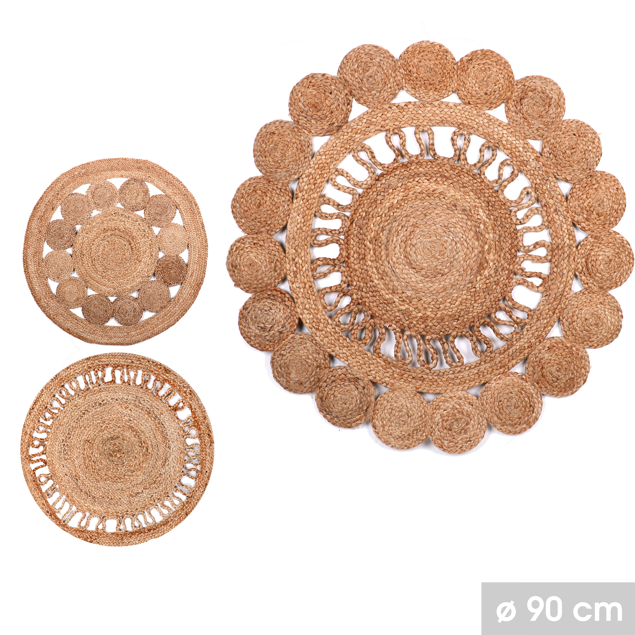 Teppich rund Ø 90 cm aus 100% Naturfaser Jute