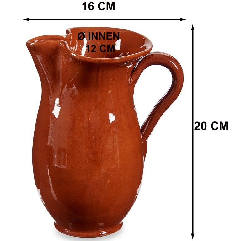 Tonkrug als Highlight mit besonderem Flair. Der Krug aus Ton ist ist in Handarbeit endveredelt, kleine Unebenheiten sowie Farbunterschiede sind keinesfalls Mängel sondern spiegeln die Einzigartigkeit dieses Produkt wieder – Jedes Stück ist ein einmaliges Unikat. Aufgrund der Ursprünglichkeit auch beliebt auf Mittelalterfesten, Jahrmärkten oder Wikingerfesten. Die Krug ist teilglasiert und kann aufgrund des Materials die Temperatur von Getränken sehr lange halten. Die Karaffe ist ideal für Wein, Met, Saft, Wasser, Glühwein und vieles mehr.