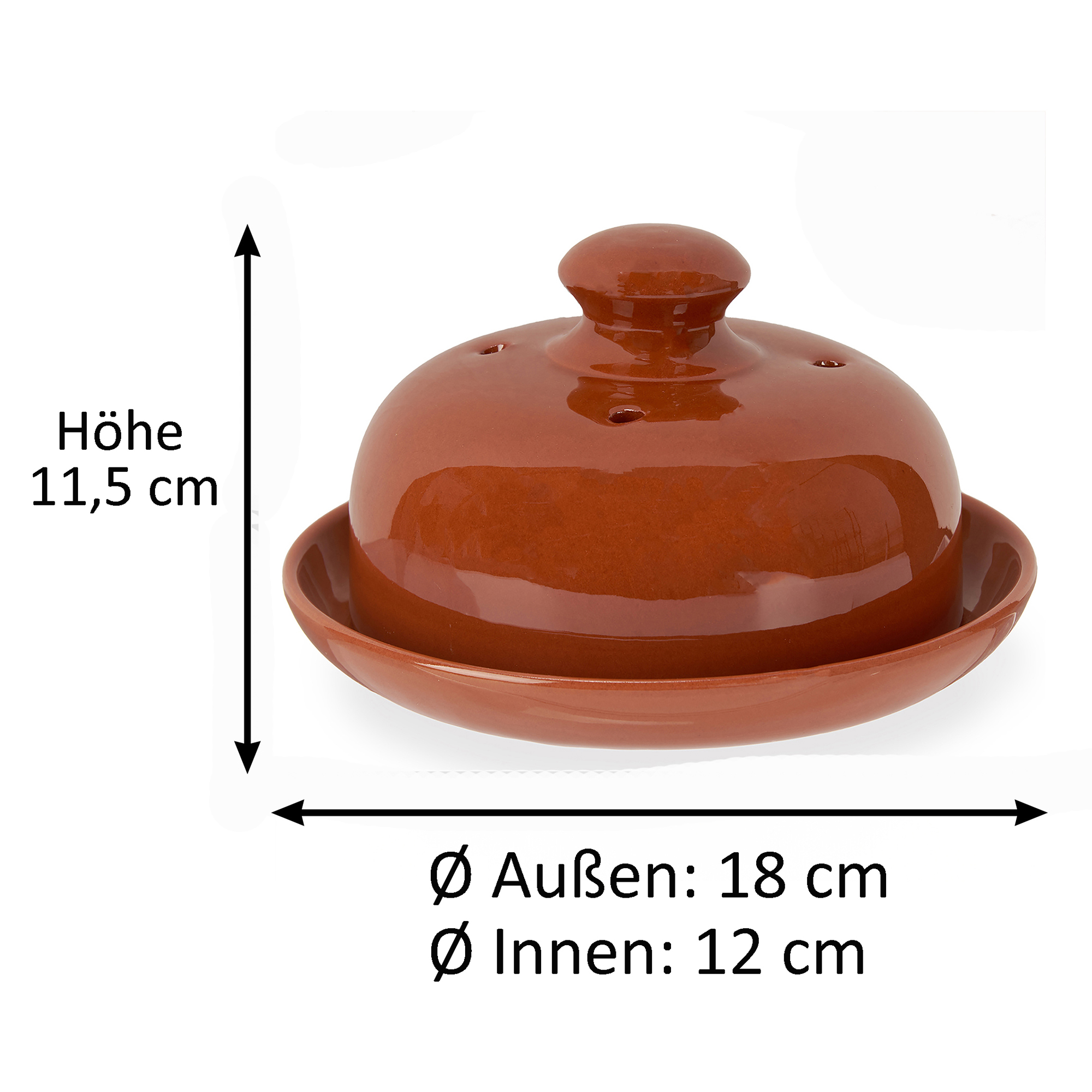 Handveredelter Topf aus Ton mit Deckel zur Aufbewahrung von Lebensmitteln. Die hochwertigen und sehr ursprünglichen Tongefäße mit Deckel stammen aus dem warmen Mittelmeerraum und vereinen zeitgemäßes Aufbewahren von Lebensmitteln mit einer sehr alten Handwerkskunst. Jeder Topf ist von Hand endveredelt und somit ein Unikat. Leichte Farbabweichungen sind kein Qualitätsmangel sondern unterstreichen die Einzigartigkeit sowie den Charme des Produkts. In diesen Gefäßen aus Ton können Sie je nach Größe des Topfs Lebensmittel wie Zwiebel, Kartoffel, Knoblauch, Gemüse, Obst, Käse und Butter bestens aufbewahren. Der Vorratsbehälter schützt Ihre Lebensmittel vor Licht und Feuchtigkeit und hält diese lange frisch.