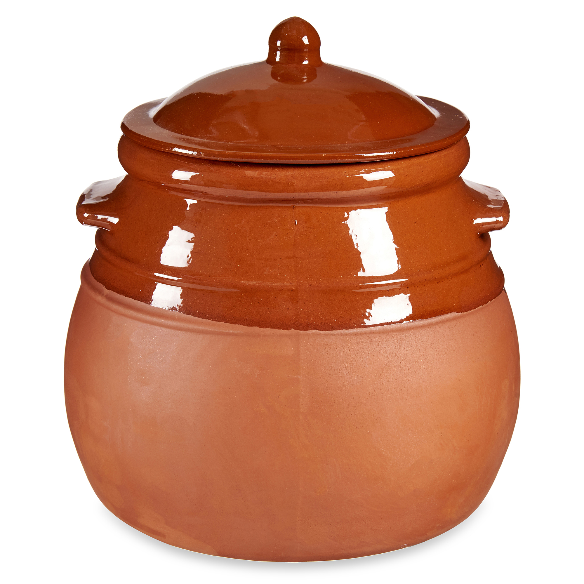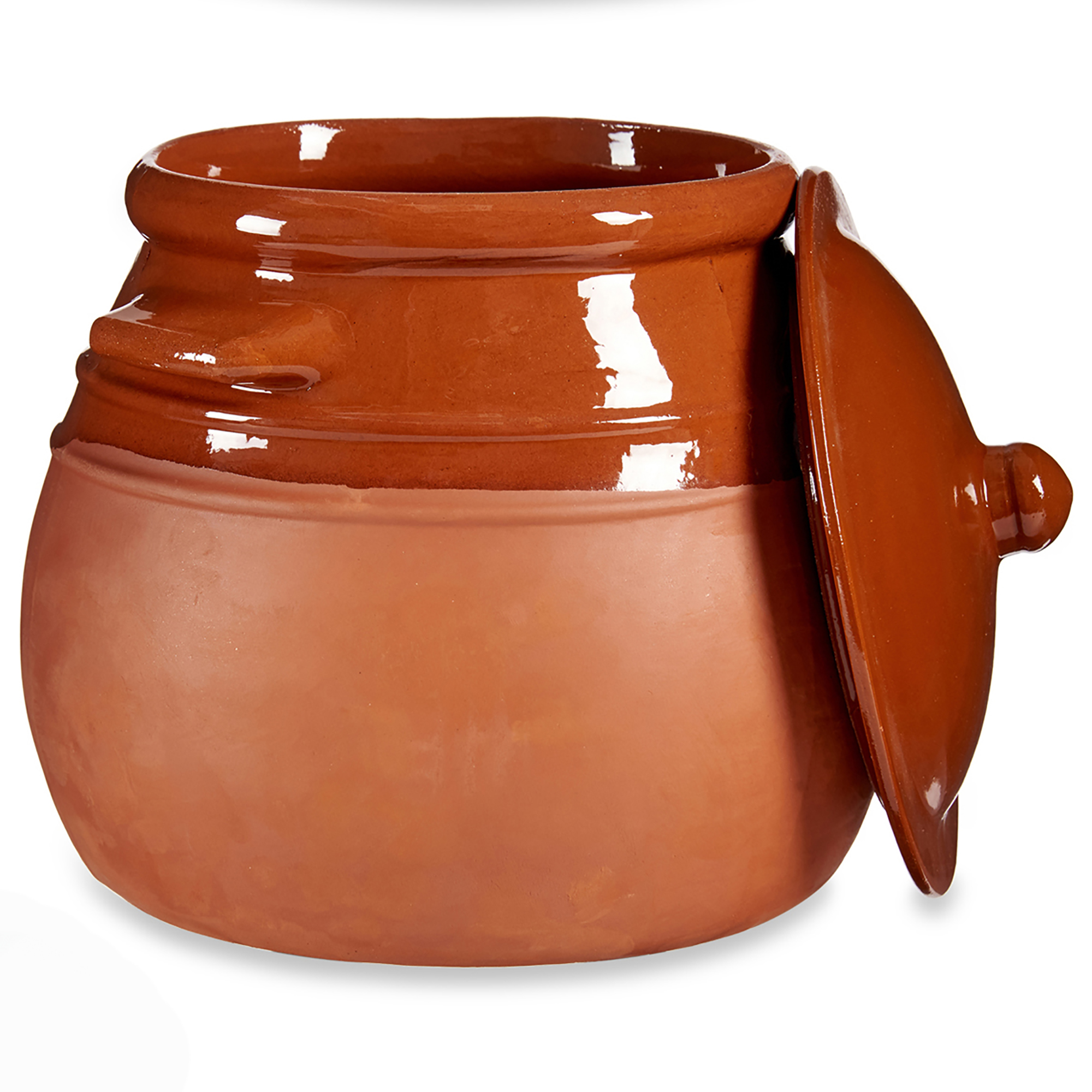 Produktinformationen "Tontopf mit Deckel - Stewpot teilglasiert mit Griffen"
