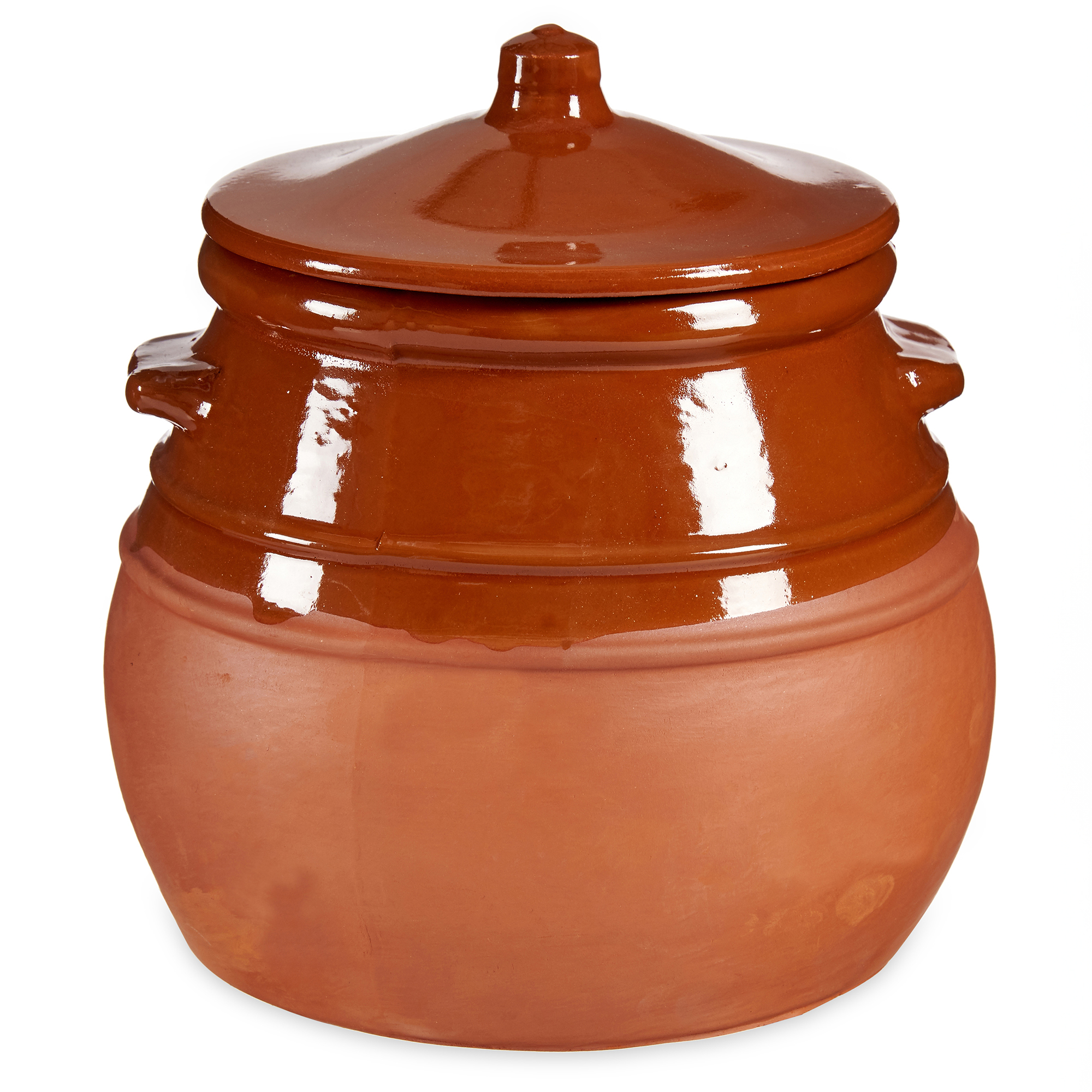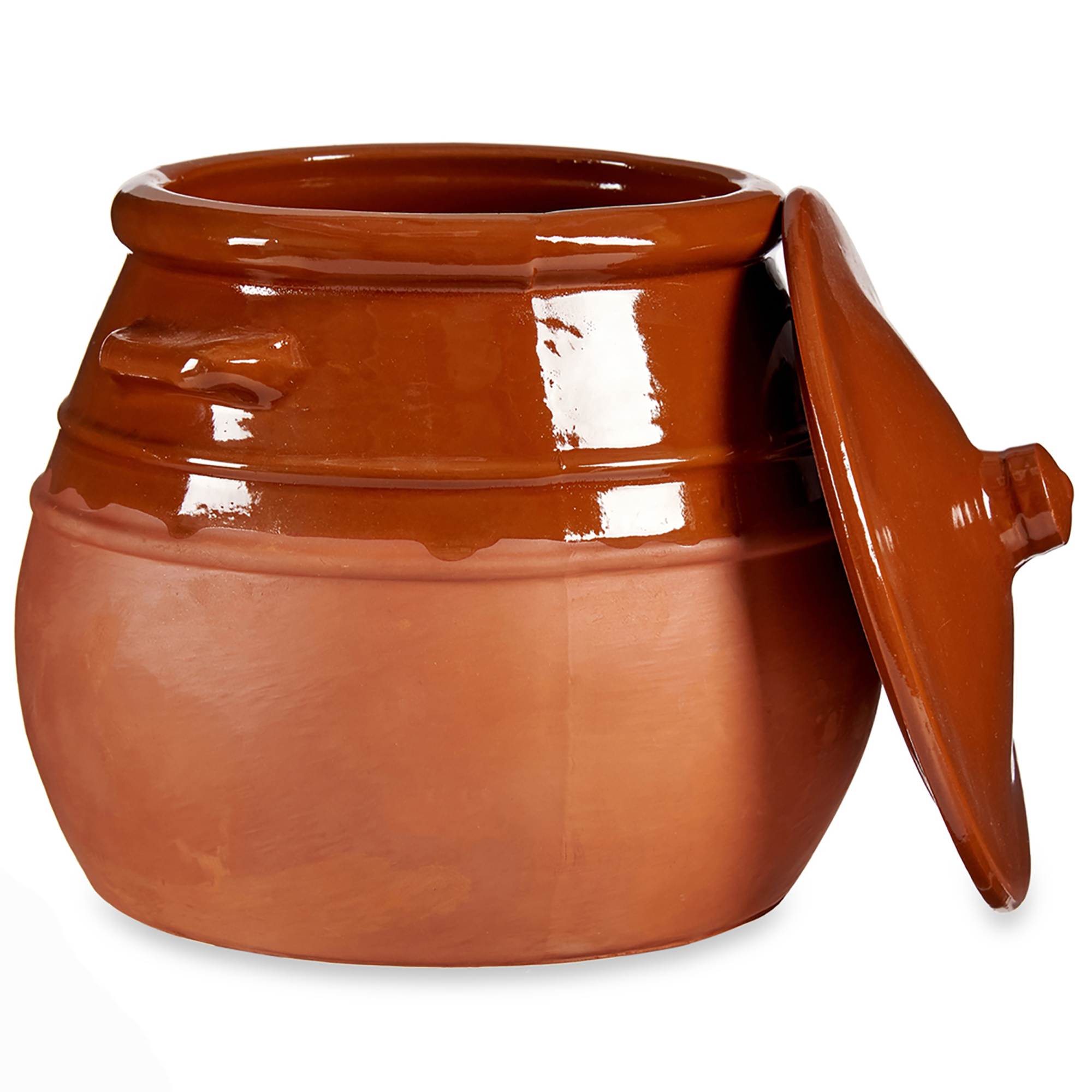 Produktinformationen "Tontopf mit Deckel - Stewpot teilglasiert mit Griffen"