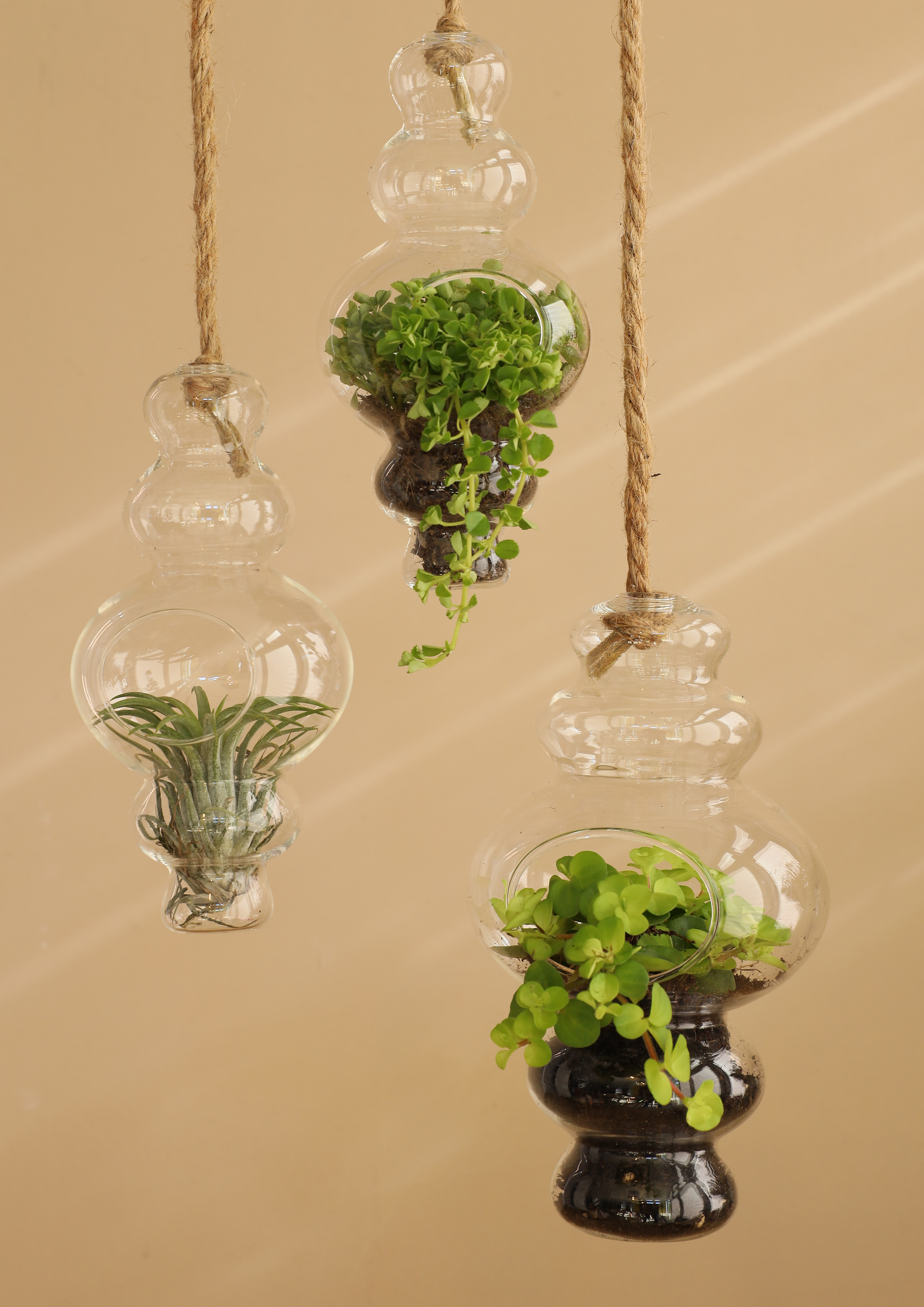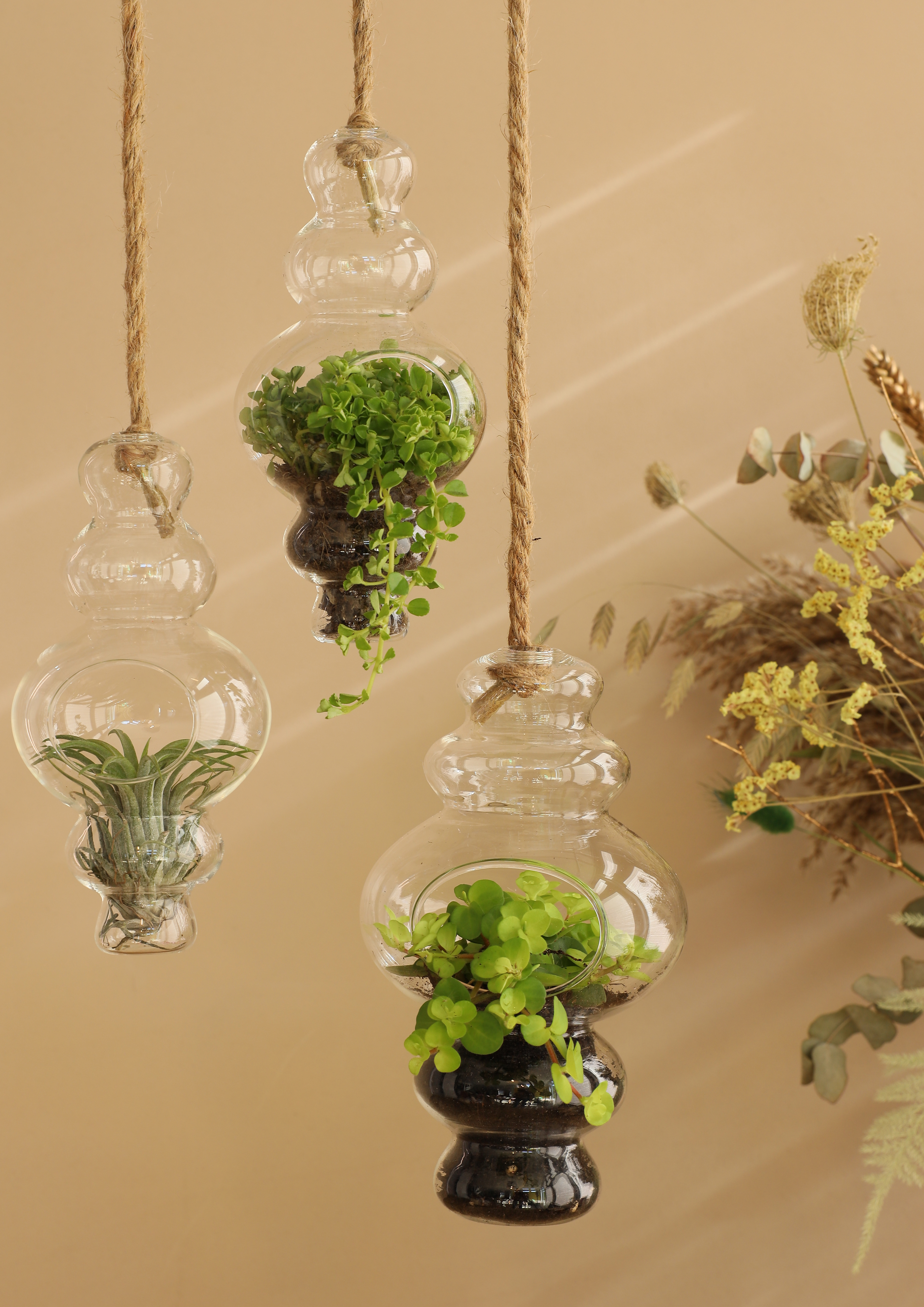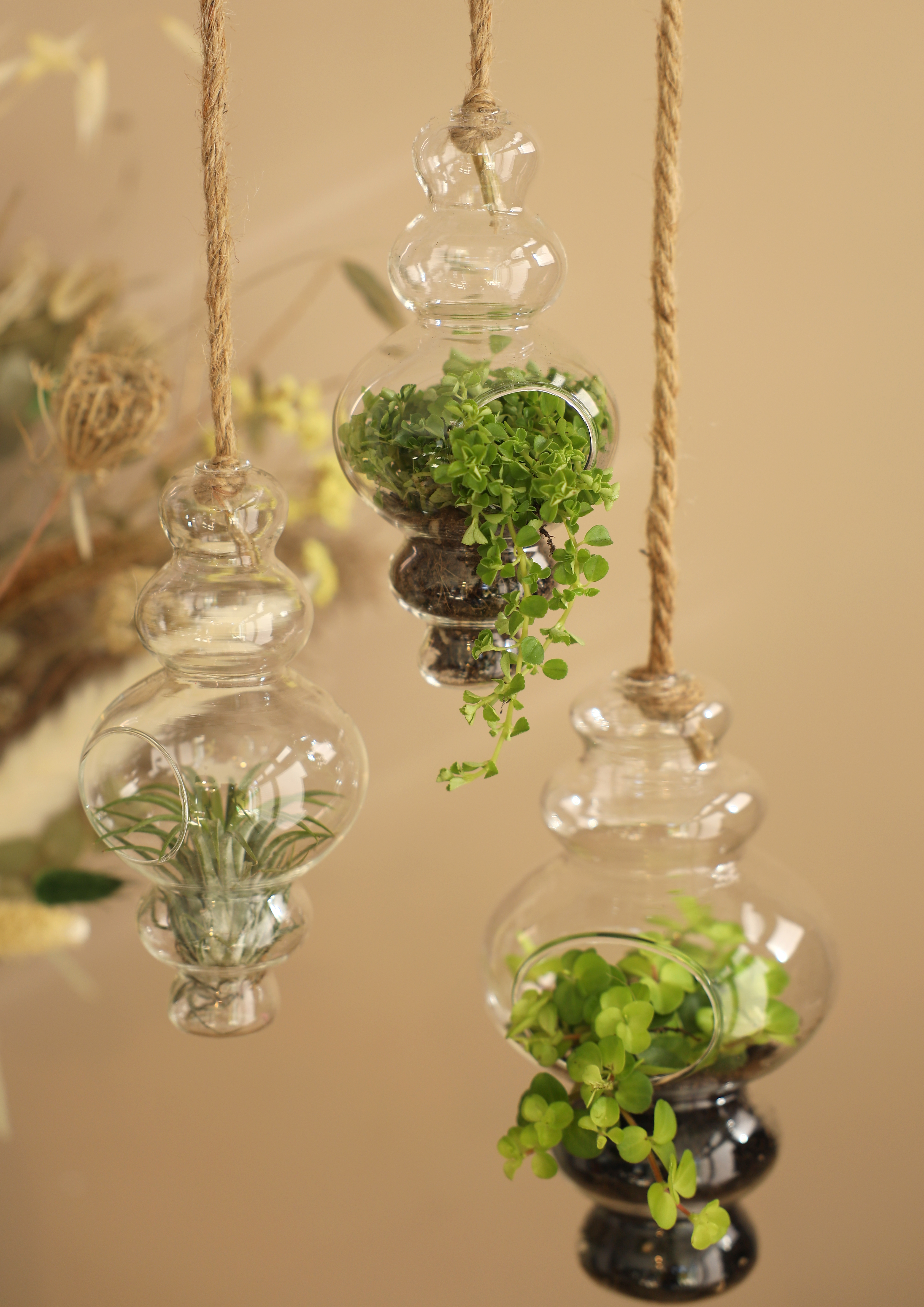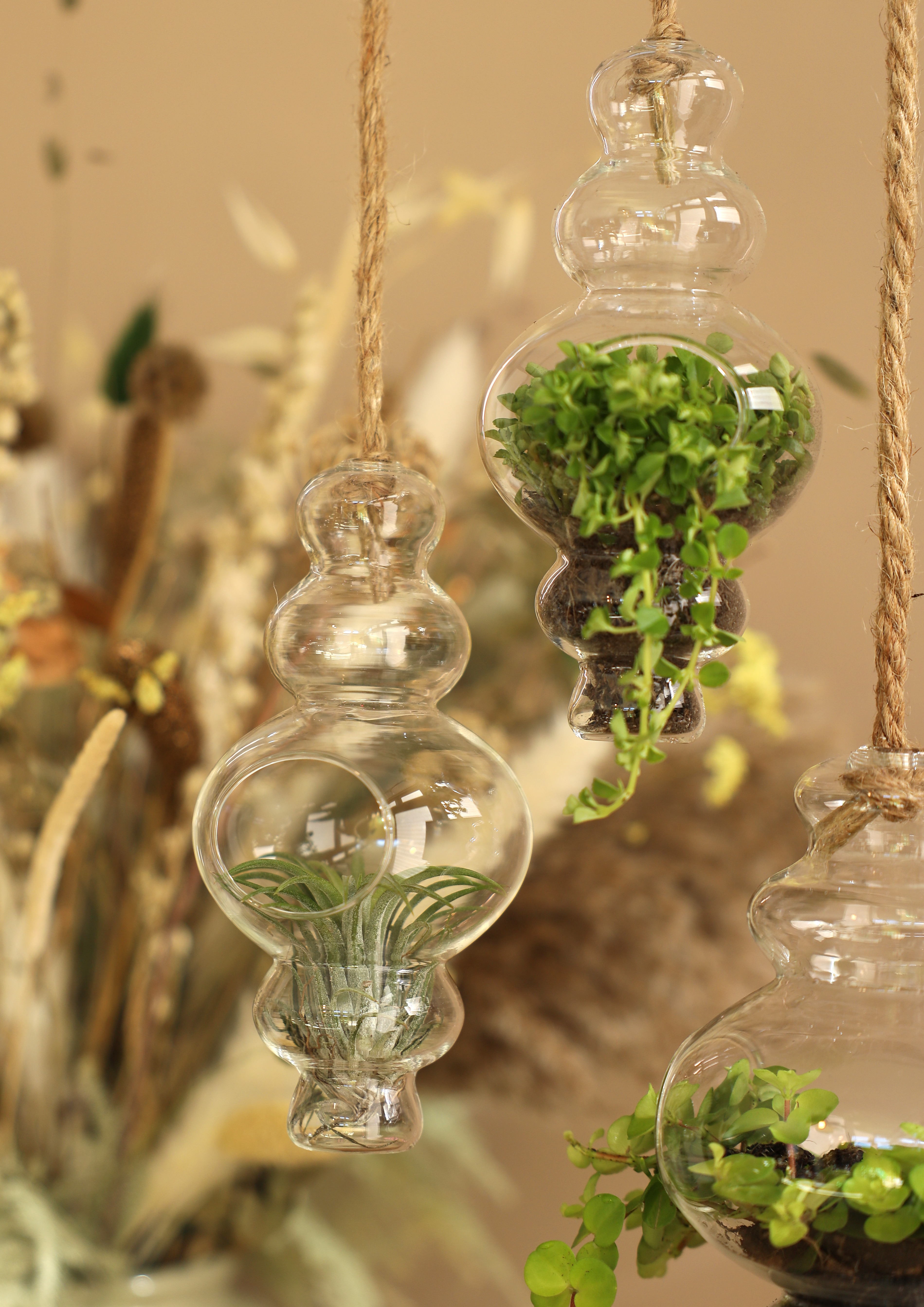 Vase - Terrarium "Alisa" mit Seil zum Hängen