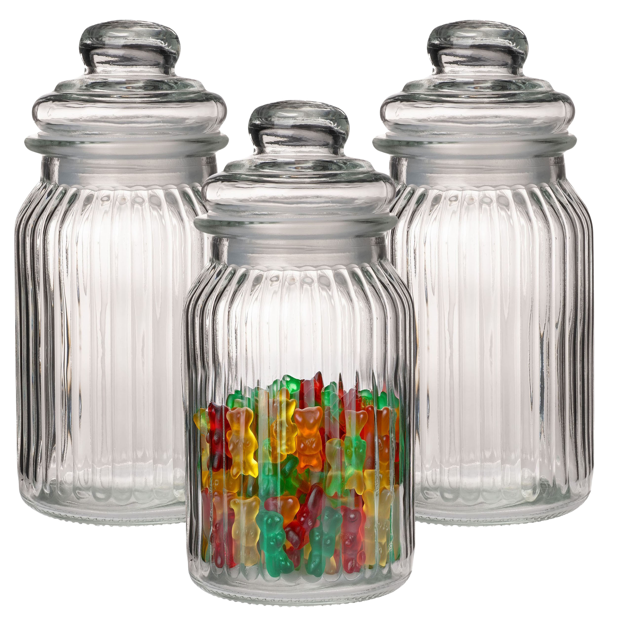 Diese hochwertigen und eleganten Vorratsgläser in geriffelter Form mit Deckel aus Glas sind äußerst flexibel einsetzbar. Die luftdichte Abdichtung im Deckel gewährleistet, dass Ihre Lebensmittel lange frisch bleiben. Ob als stilvolle Gewürzgläser, für die Aufbewahrung von Süßigkeiten, Bonbons oder Keksen oder als Behälter bei größeren Mengen wie Reis, Mehl, Nudeln oder Kaffee - diese Gläser im Vintage-Look sind die perfekte Lösung, um Ordnung und Eleganz in Ihre Küche zu bringen. Lassen Sie sich von der Vielseitigkeit und dem stilvollen Design dieser Gläser überzeugen und verleihen Sie Ihrer Küche einen Hauch von Raffinesse.
