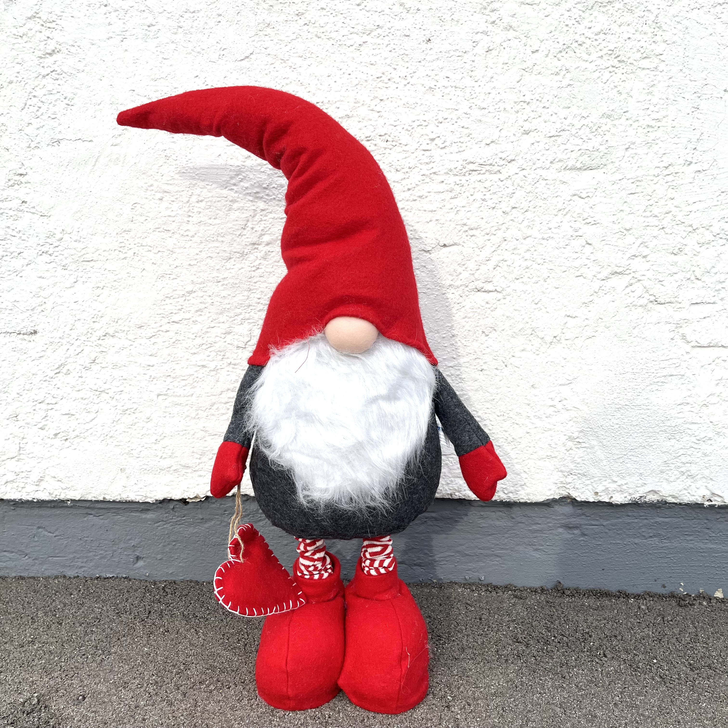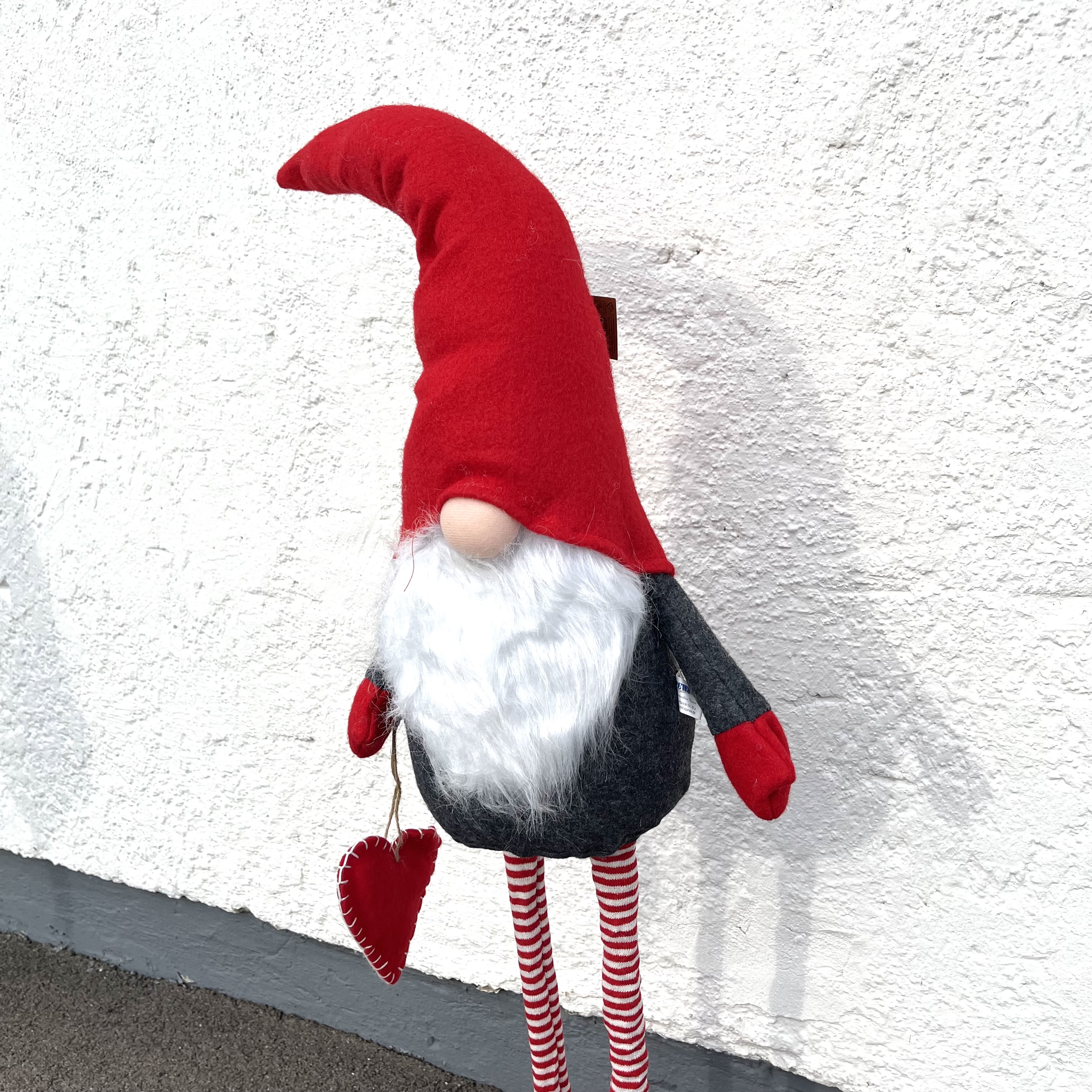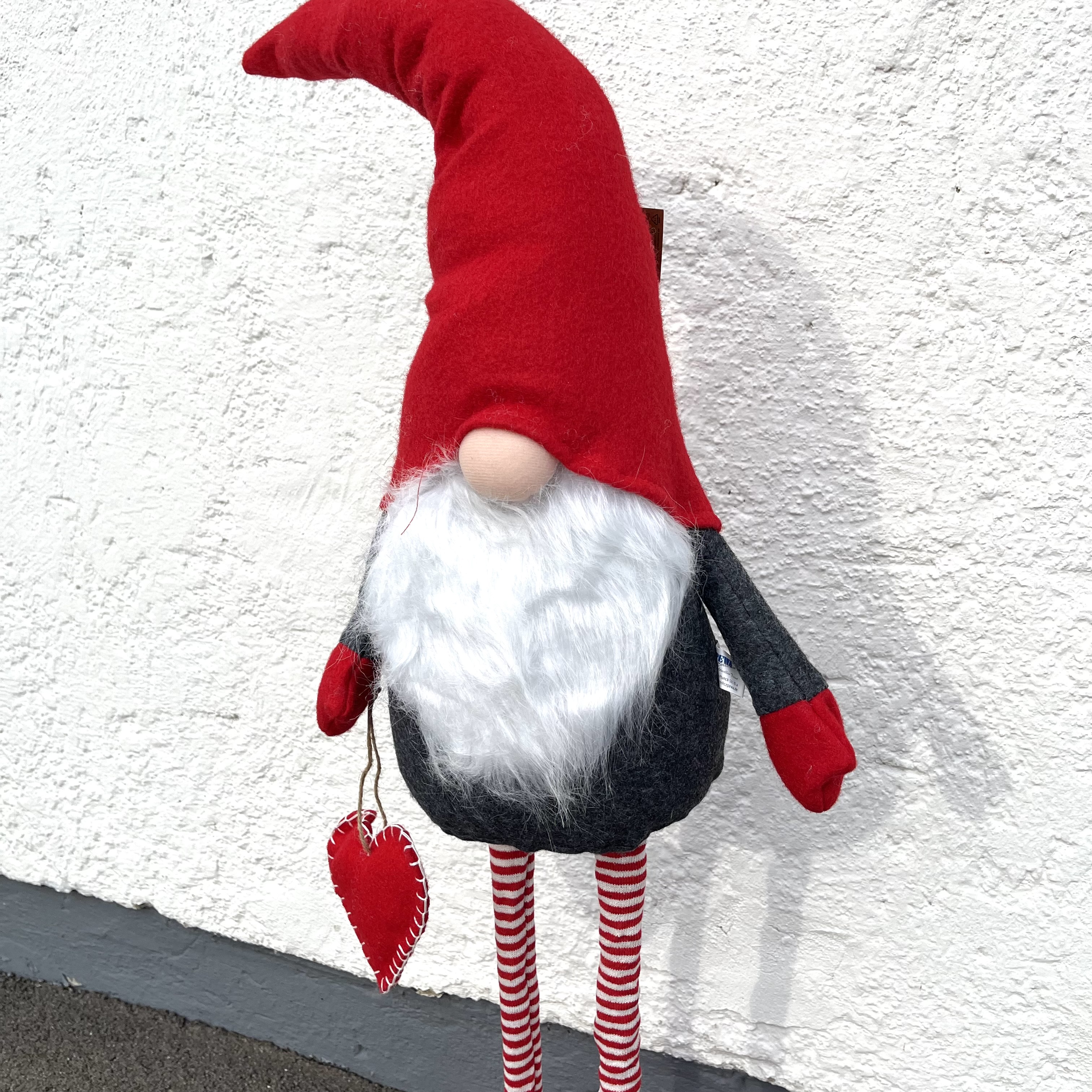 Dieser bezaubernde XL-Weihnachts-Deko-Wichtel aus Stoff mit Teleskop-Beinen ist eine wunderbare Ergänzung für Ihre winterliche Dekoration. Mit einer beeindruckenden Höhe von bis zu 120 cm wird er garantiert zum Blickfang in Ihrem Zuhause oder auch als Geschenkidee für einen lieben Menschen. Der Wichtel besticht durch sein süßes Aussehen und seine liebevollen Details. Er trägt eine große rote Zipfelmütze, die ihm ein niedliches Äußeres verleiht. In seiner Hand hält er ein Herz, was ihn noch herzlicher wirken lässt. Dieser kleine Kerl versprüht einfach Freude und zaubert jedem Betrachter ein kleines Lächeln ins Gesicht. Besonders interessant an diesem Deko-Wichtel sind jedoch seine Teleskop-Beine. Sie können ausgezogen werden, um dem Wichtel eine stattliche Größe von ca. 120 cm zu geben. Doch auch in eingezogenem Zustand macht der Wichtel mit seinen Maßen von 80 x 30 x18 cm eine gute Figur. Die Herstellung dieses XL-Deko-Wichtels erfolgte mit viel Liebe zum Detail, was sich in der Qualität des Produkts widerspiegelt. Der Wichtel steht stabil und sicher auf seinem Platz und kann somit bedenkenlos platziert werden. Ob als festliche Ergänzung Ihrer Wohnungseinrichtung während der Winterzeit oder als originelles Weihnachtsgeschenk - dieser charmante XL-Deko-Wichtel überzeugt auf ganzer Linie! Sein witziges Aussehen gepaart mit seiner hochwertigen Verarbeitung machen ihn zu einem absoluten Must-have für die Adventszeit und Weihnachten. Einfach zum Verlieben!