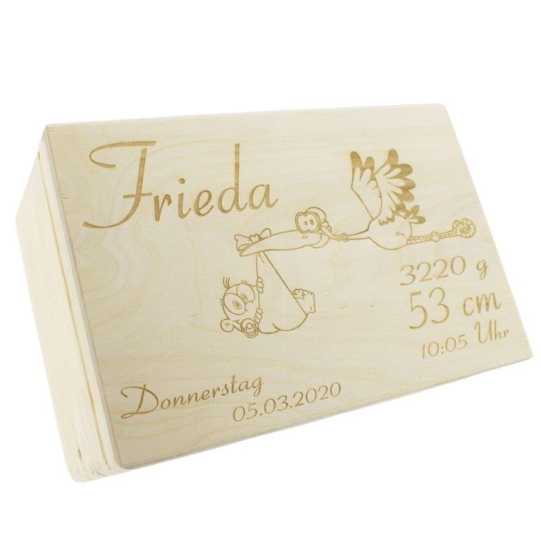 Erinnerungsbox Baby "Storch" - individuell graviert zur Geburt