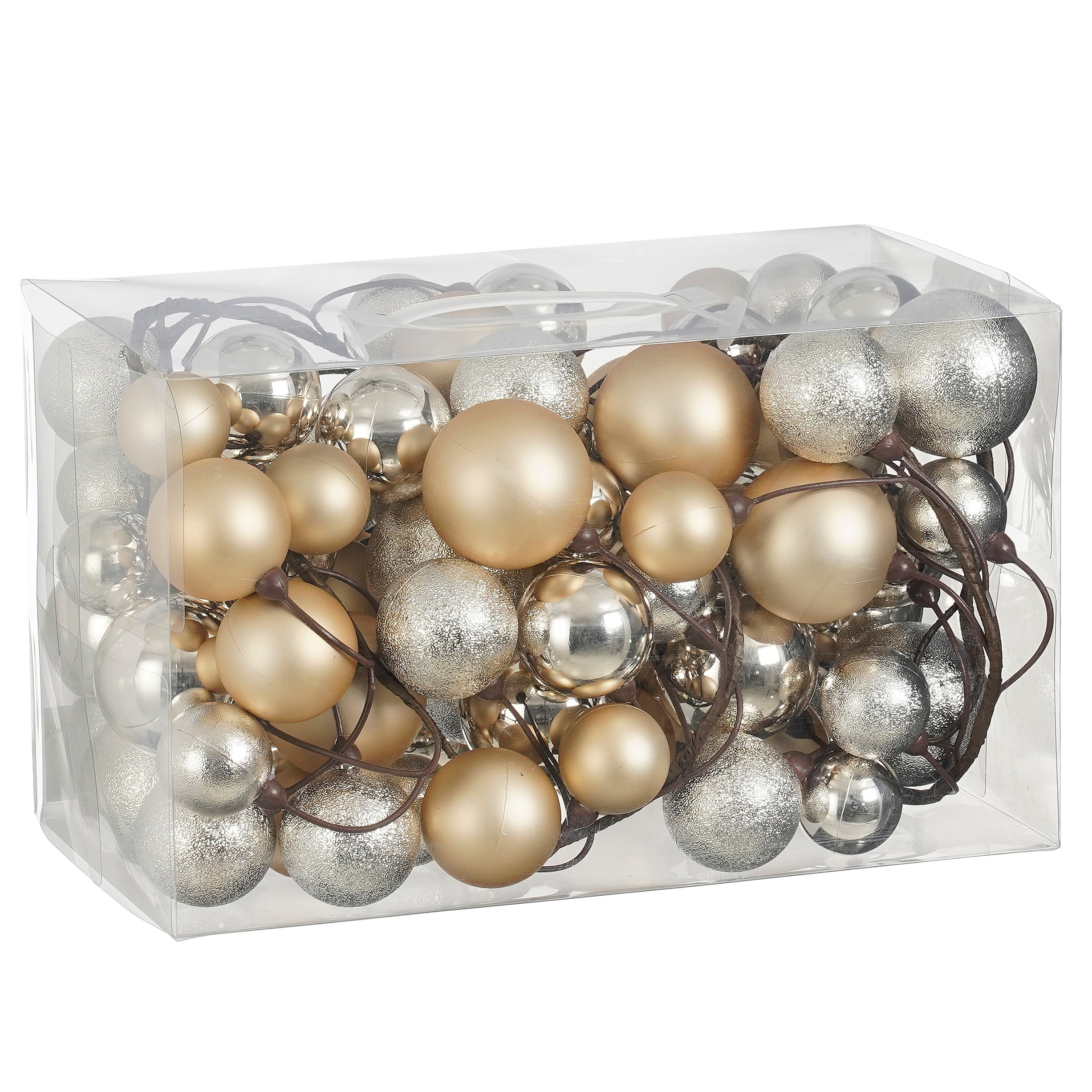 Diese bezaubernde Weihnachtsgirlande mit einer beeindruckenden Länge von 1180 cm verleiht jedem Raum oder Außenbereich festlichen Glanz und eine stimmungsvolle Atmosphäre. Die Girlande ist liebevoll mit kleinen Weihnachtskugeln in verschiedenen Oberflächen gestaltet – glänzend, matt sowie mit funkelndem Glittereffekt –, wodurch sie besonders vielseitig und ansprechend wirkt. Dank des hochwertigen Materials ist die Girlande nicht nur für den Innenbereich, sondern auch für den Außenbereich bestens geeignet und trotzt somit problemlos winterlichen Witterungsbedingungen. Ob zur Dekoration von Fenstern, Treppen, Geländern oder als festlicher Akzent im Garten: Dieses dekorative Element bringt weihnachtliche Freude und eleganten Charme in jede Umgebung. Ein unverzichtbarer Blickfang für die festliche Jahreszeit!
