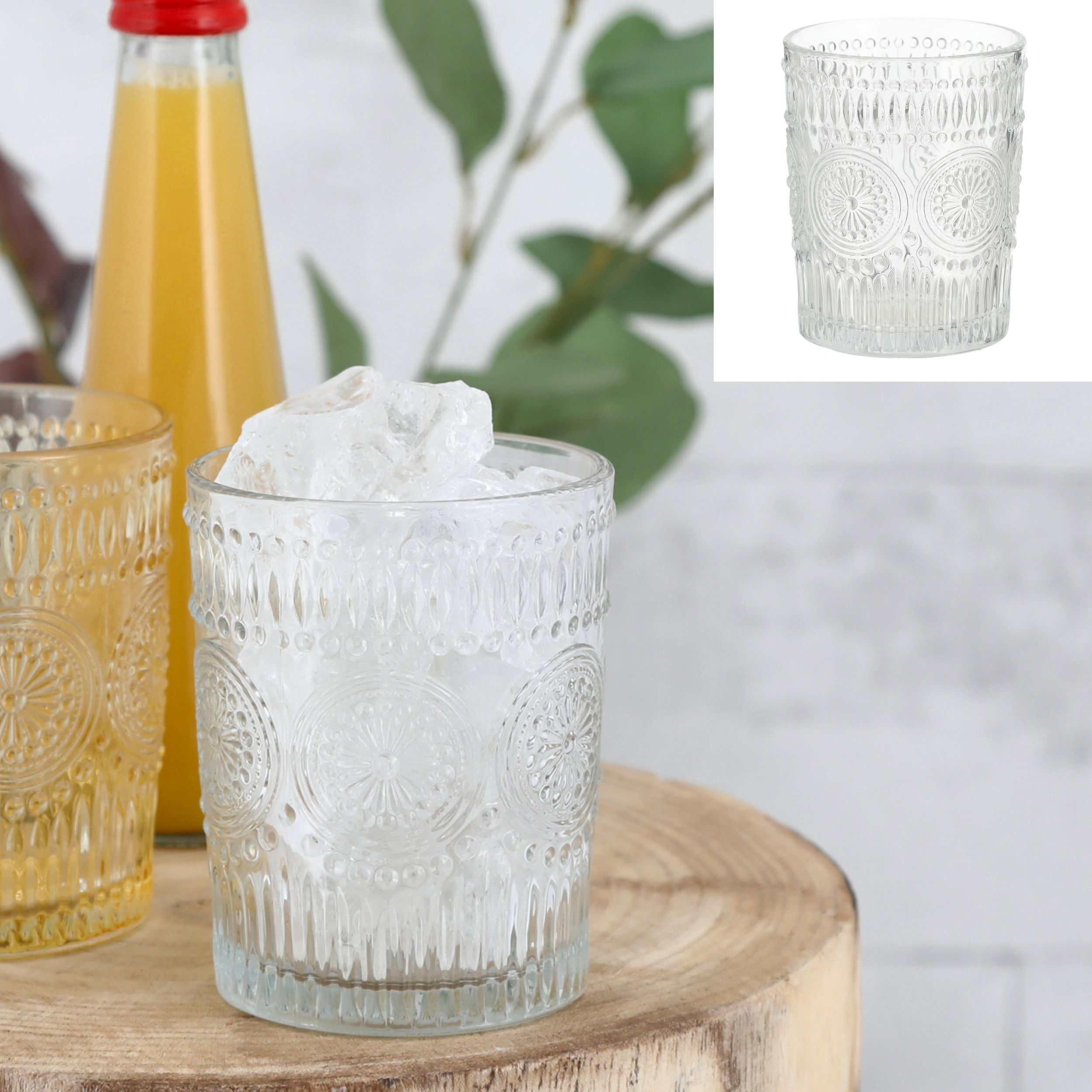 Die stilvollen Trinkgläser „Mandala“ überzeugen durch ihr einzigartiges Glasmuster, das jedem Getränk eine elegante Note verleiht. Mit einer Füllmenge von 300 ml sind sie vielseitig einsetzbar und eignen sich ideal für eine Vielzahl von Getränken – sei es als klassisches Wasserglas, für erfrischenden Saft, kreative Longdrinks oder spritzige Limonaden. Die hochwertige Verarbeitung garantiert Langlebigkeit und eine angenehme Haptik, wodurch die Gläser sowohl im Alltag als auch bei besonderen Anlässen zum unverzichtbaren Begleiter werden. Dank ihres zeitlosen Designs fügen sich die „Mandala“-Gläser harmonisch in jede Tischdekoration ein und verleihen Ihrem Getränkeerlebnis eine stilvolle Eleganz.