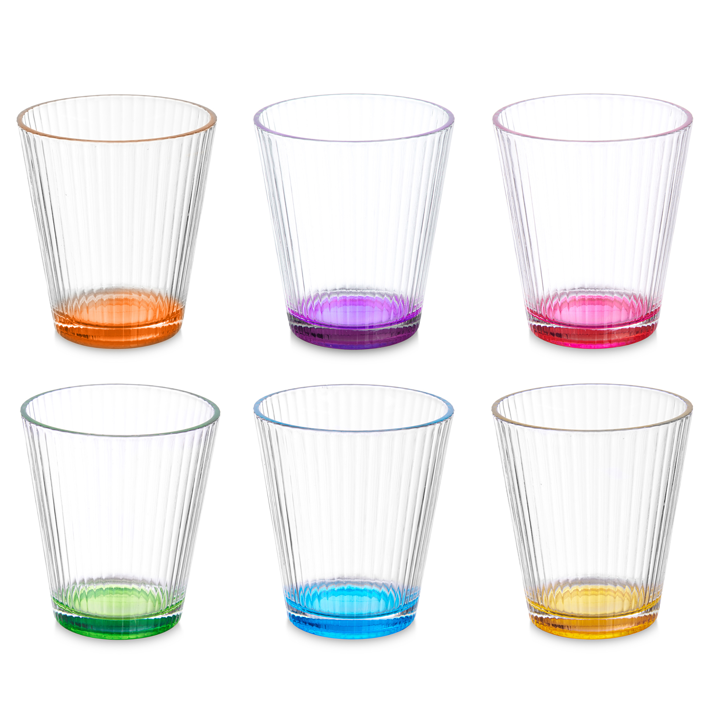 12 x Trinkgläser mit buntem Boden - 375 ml - Spülmaschinenfest
