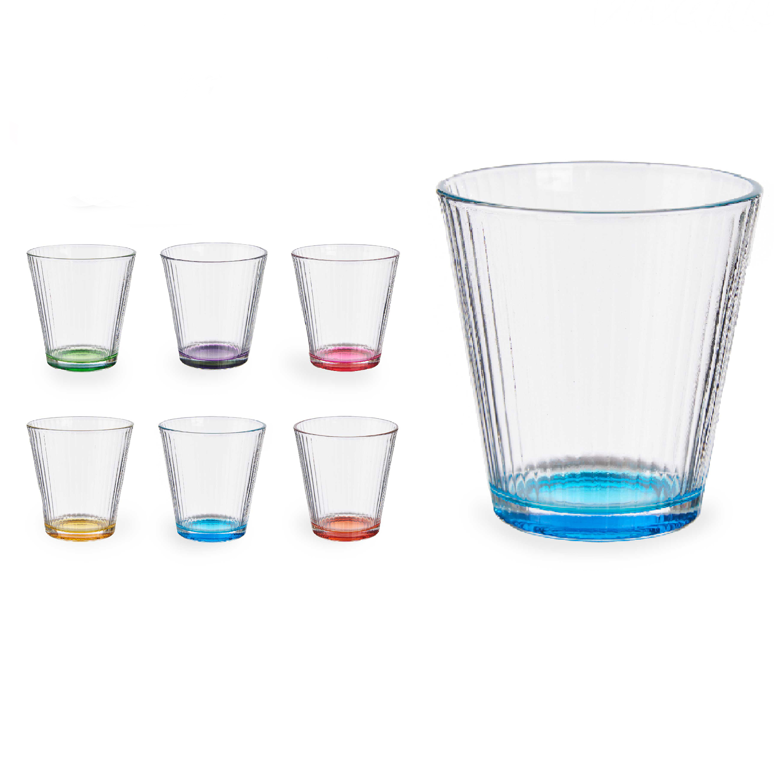 Entdecken Sie unsere hübschen Trinkgläser mit farbenfrohem Glasboden, die nicht nur Ihren Durst stillen, sondern auch gute Laune verbreiten. Ob für Wasser, Eistee, Saft, Tee, Longdrinks oder Cocktails - diese Gläser sind vielseitig einsetzbar. Das Beste daran: Sie können die Gläser problemlos in der Spülmaschine reinigen, ohne dass sie ihre strahlenden Farben verlieren. Durch ihre besondere Glasstruktur sind sie zudem ein echter Blickfang auf jedem gedeckten Tisch. Die individuellen Bodenfarben sorgen dafür, dass jeder Gast sein eigenes Glas leicht wiedererkennt. Gönnen Sie sich und Ihren Gästen dieses besondere Trinkerlebnis.