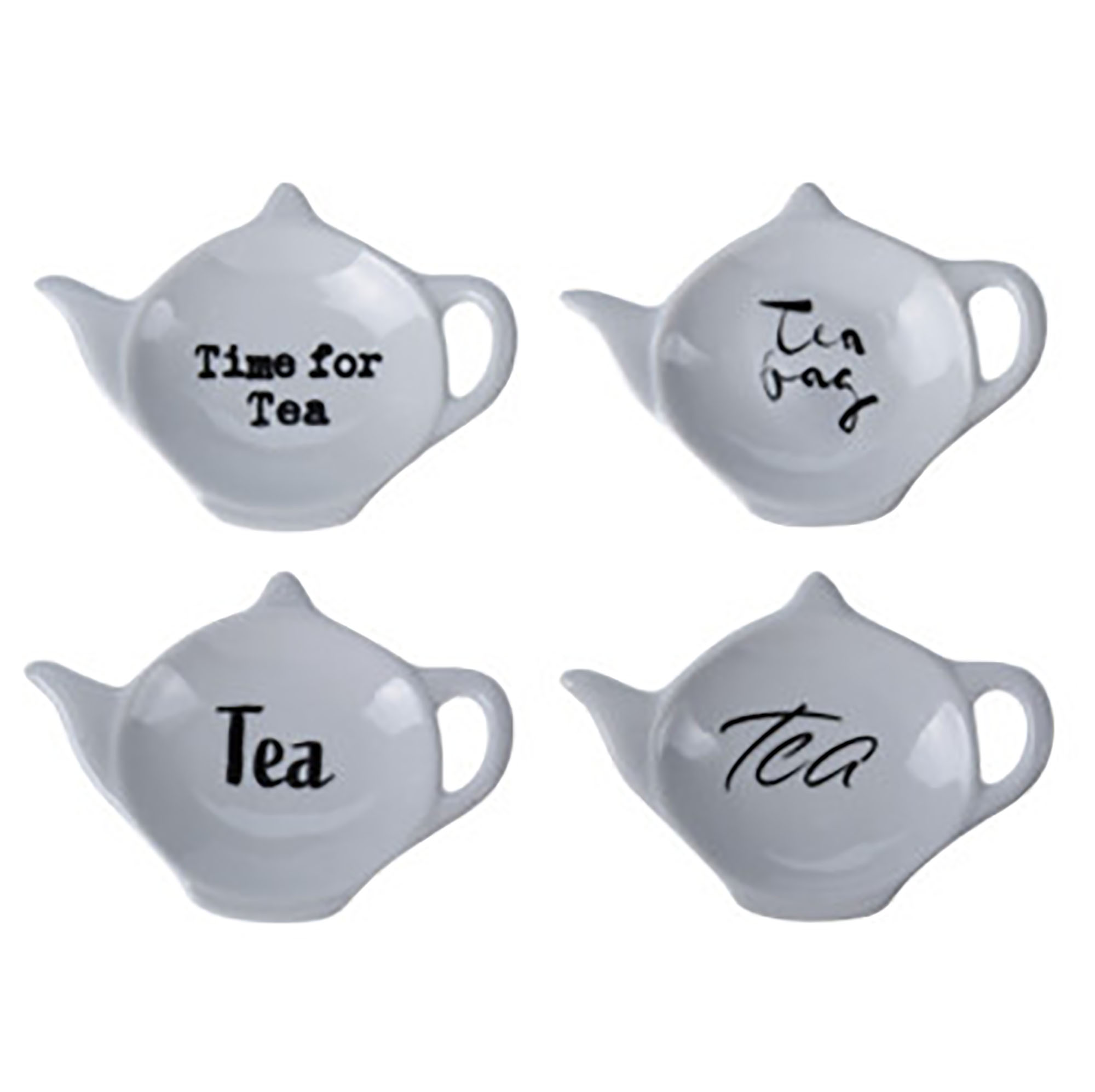 4 x Teebeutelablagen aus Porzellan mit Aufdruck ca. 12 cm