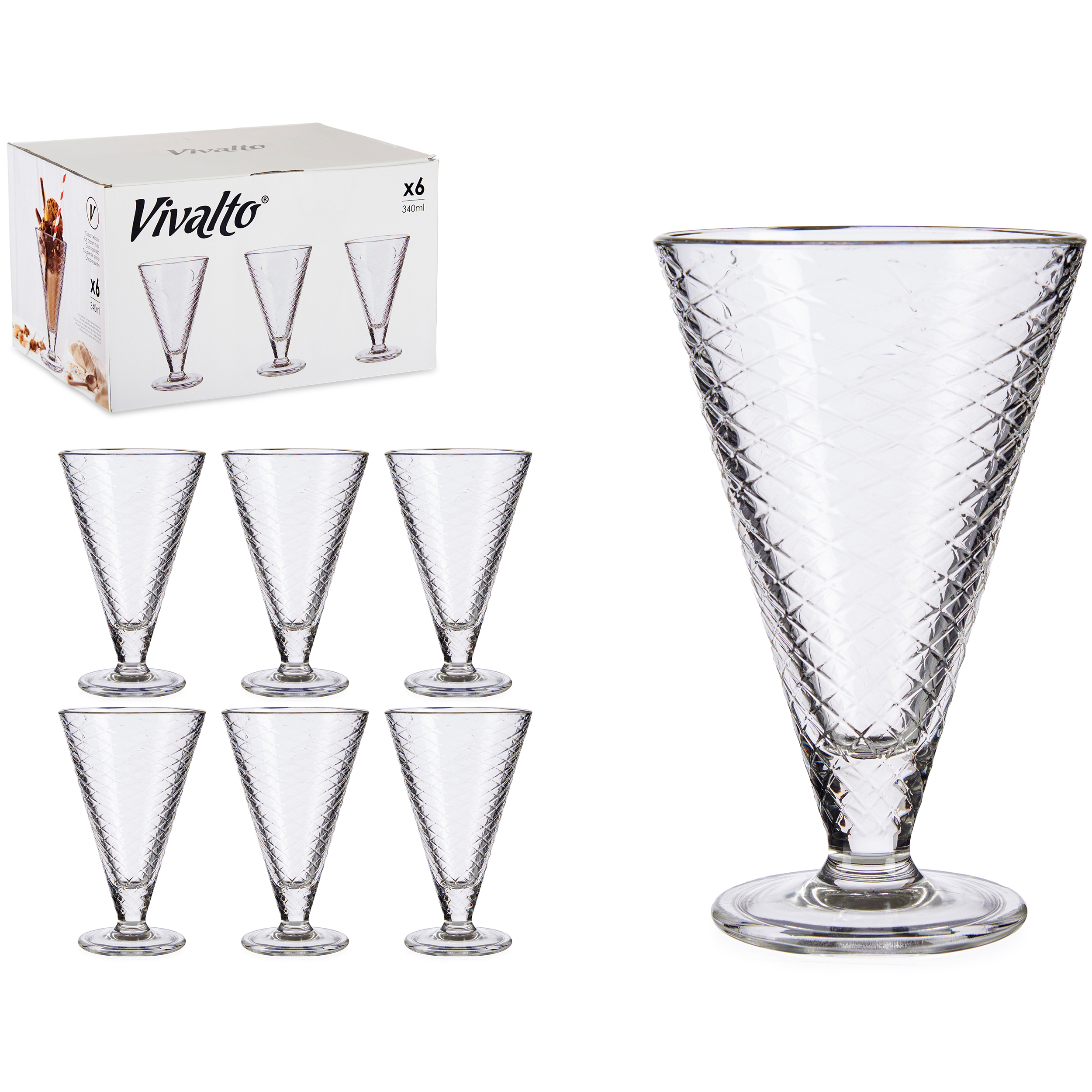 6-tlg. Set Eisbecher / Dessertschalen in Kelchform aus Glas mit Fuß 340 ml