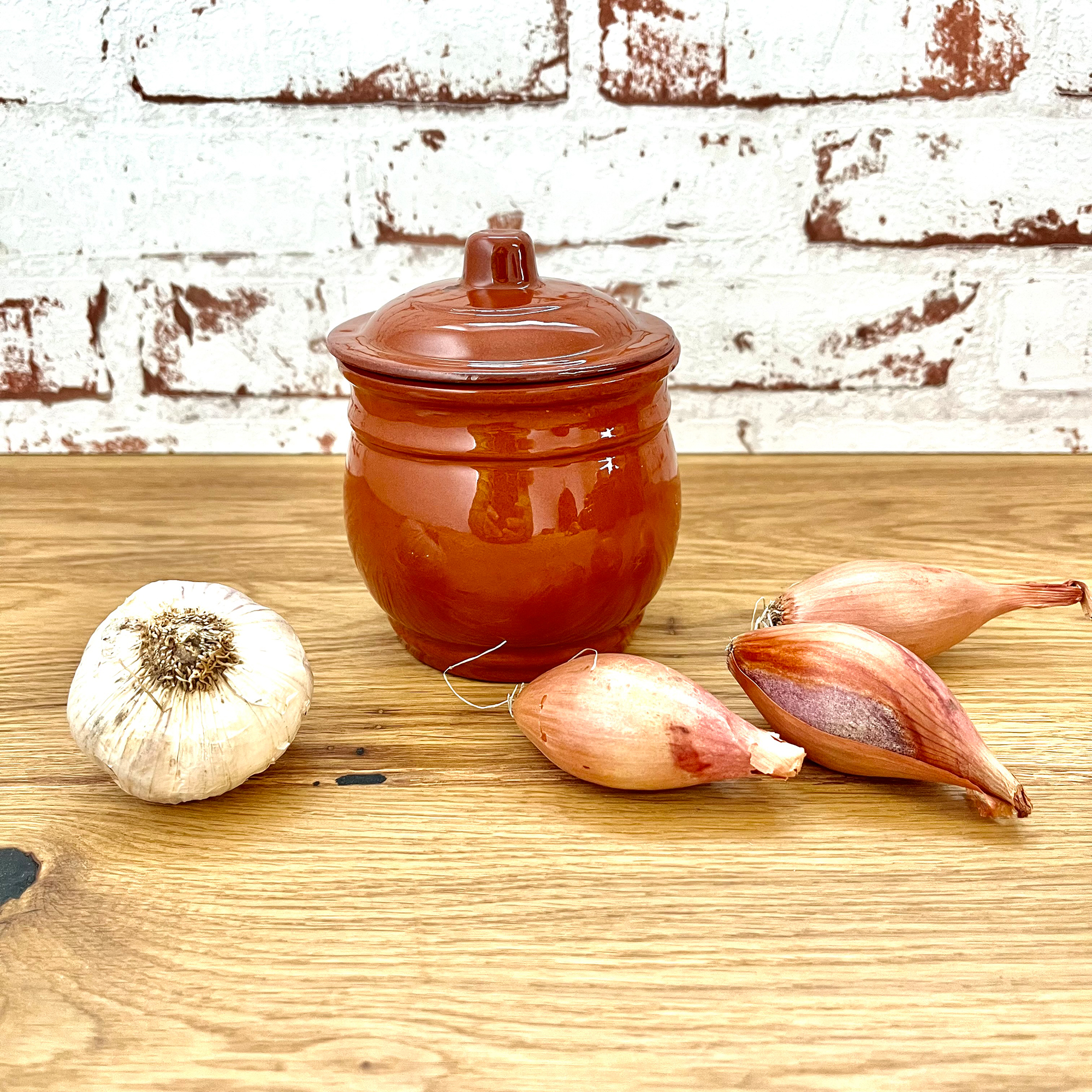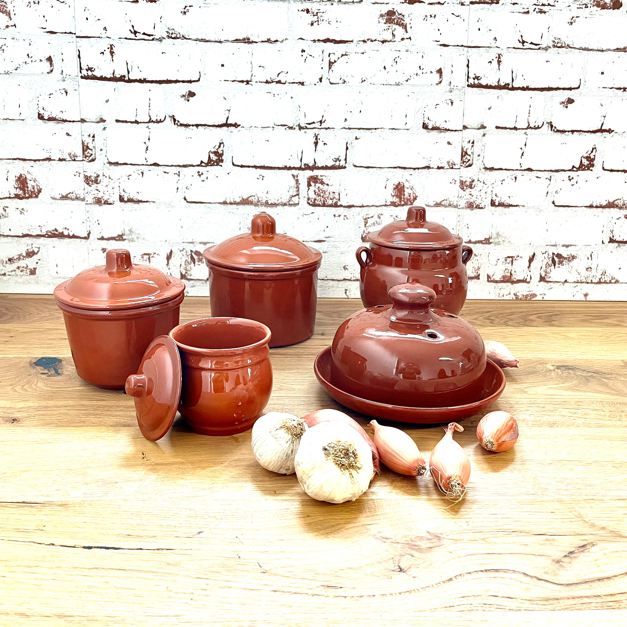 Handveredelter Topf aus Ton mit Deckel zur Aufbewahrung von Lebensmitteln. Die hochwertigen und sehr ursprünglichen Tongefäße mit Deckel stammen aus dem warmen Mittelmeerraum und vereinen zeitgemäßes Aufbewahren von Lebensmitteln mit einer sehr alten Handwerkskunst. Jeder Topf ist von Hand endveredelt und somit ein Unikat. Leichte Farbabweichungen sind kein Qualitätsmangel sondern unterstreichen die Einzigartigkeit sowie den Charme des Produkts. In diesen Gefäßen aus Ton können Sie je nach Größe des Topfs Lebensmittel wie Zwiebel, Kartoffel, Knoblauch, Gemüse, Obst, Käse und Butter bestens aufbewahren. Der Vorratsbehälter schützt Ihre Lebensmittel vor Licht und Feuchtigkeit und hält diese lange frisch.