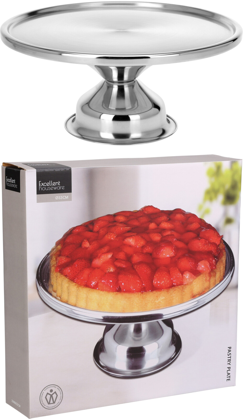 Produktinformationen "Tortenplatte aus Edelstahl mit Ø 33 cm"