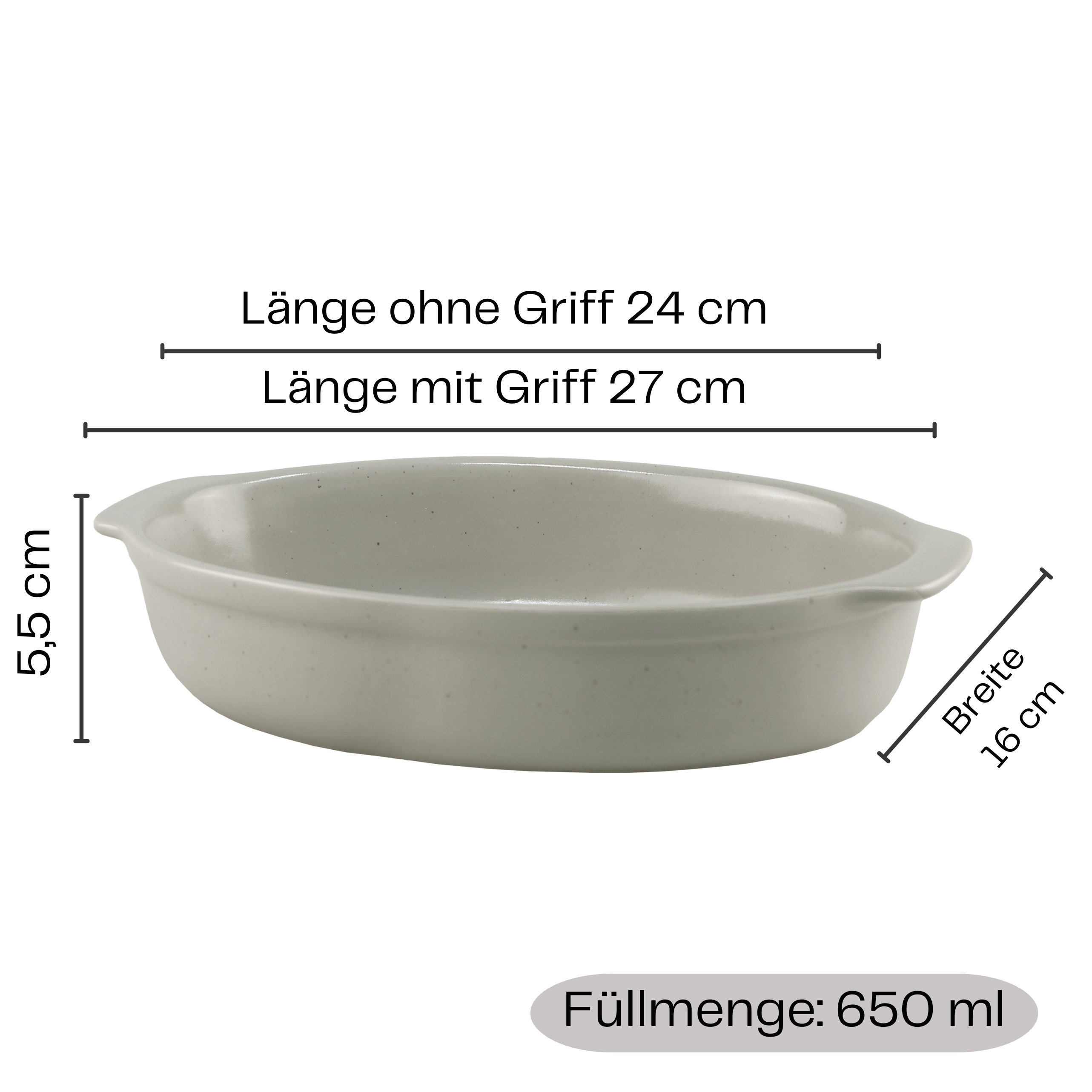 Auflaufform aus Keramik in ovaler Form mit Griff 27 x 16 cm