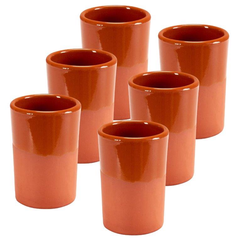 Weinbecher aus Ton als Highlight mit besonderem Flair. Die Tonbecher sind in Handarbeit endveredelt und gibt es in zwei Größen. Kleine Unebenheiten sowie Farbunterschiede sind keinesfalls Mängel sondern spiegeln die Einzigartigkeit dieses Produkt wieder – Jedes Stück ist ein einmaliges Unikat. Aufgrund der Ursprünglichkeit auch beliebt auf Mittelalterfesten, Jahrmärkten oder Wikingerfesten. Die Becher sind teilglasiert und können die Temperatur des Getränks sehr lange halten. Der ursprüngliche Tonkrug mit 1,0 Liter ist ebenfalls teilglasiert und hat die gleiche Beschaffenheit. Das Set aus Tonkrug und Becher beinhaltet 6 x Becher mit 250 ml.