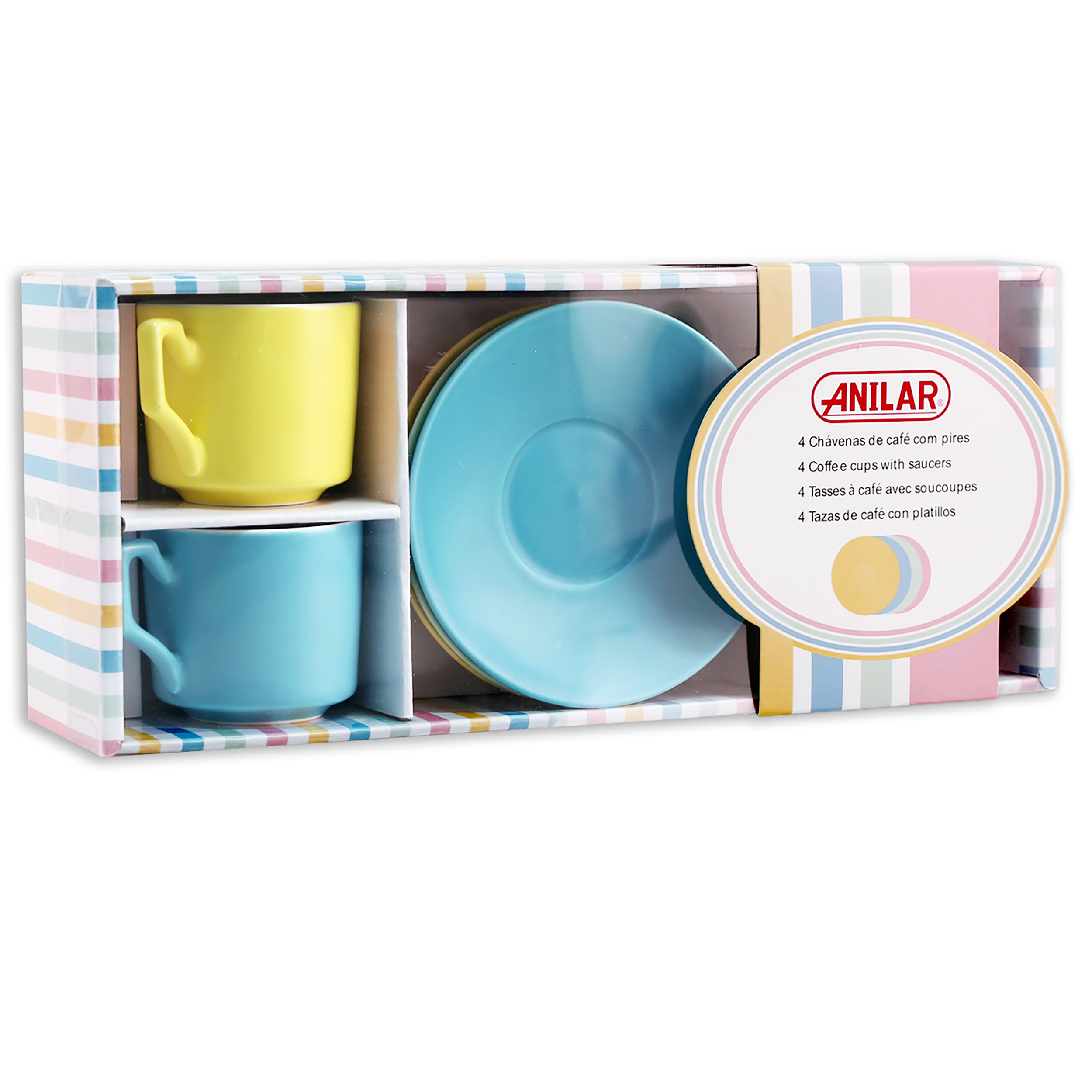 Unsere farbenfrohen Espresso-Tassen mit Unterteller sind die perfekte Ergänzung für Ihren Kaffeegenuss. Das 4er Set besticht durch ein ansprechendes Design, das Funktionalität und Stil vereint. Mit einem Fassungsvermögen von 80 ml eignen sich die Keramiktassen ideal für Cafe-Creme oder Espresso. Sie sind spülmaschinen- und mikrowellengeeignet, was die Pflege erleichtert. Die robuste Keramik sorgt dafür, dass die Tassen lange halten und ihre Farben strahlend bleiben. Nutzen Sie sie beim nächsten Brunch mit Freunden oder verschenken Sie sie an Kaffeeliebhaber. Bestellen Sie jetzt Ihr Set der farbenfrohen Espressotassen und genießen Sie einzigartige Momente bei jedem Schluck.