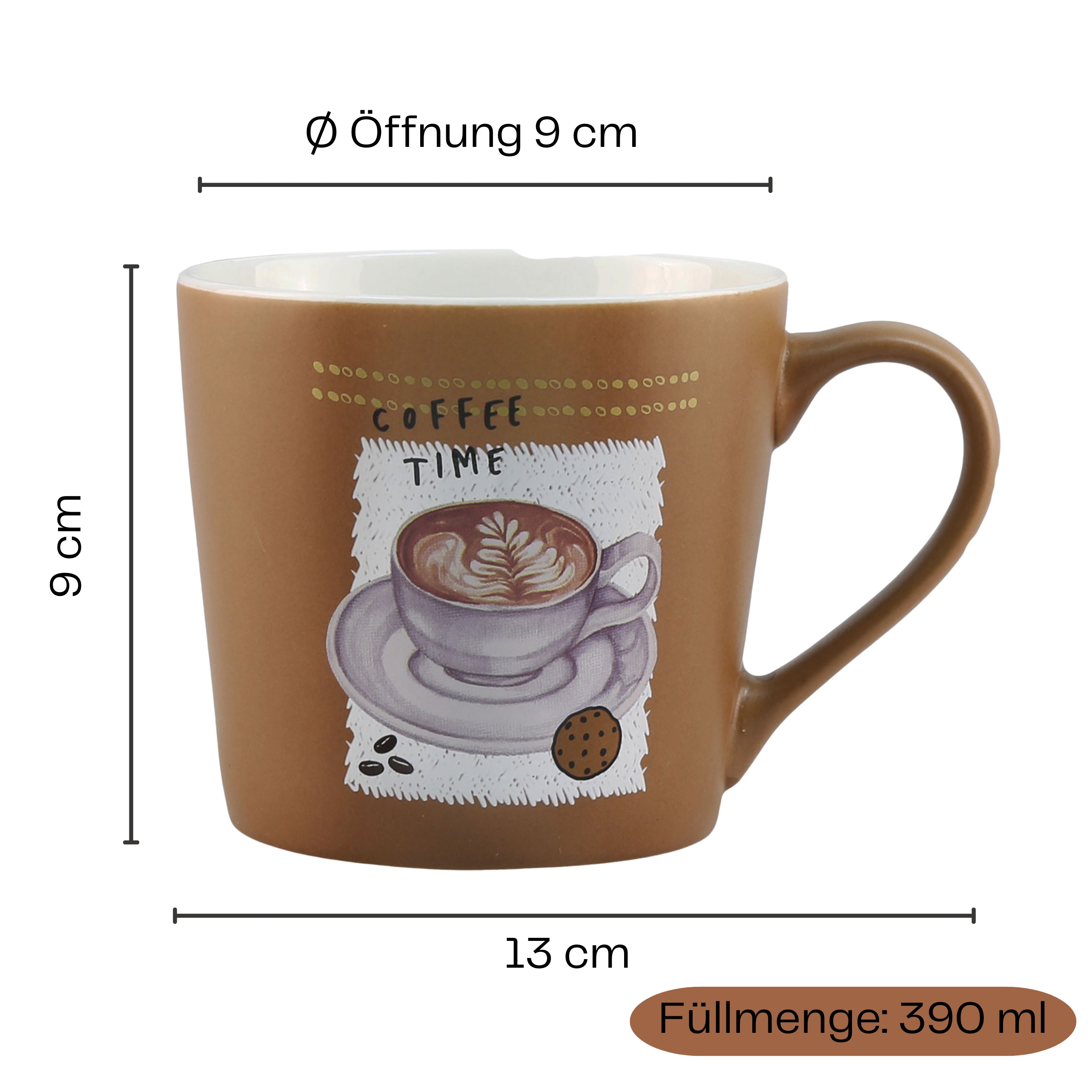 6-tlg. Set große Kaffeetassen im Retro-Look 390 ml