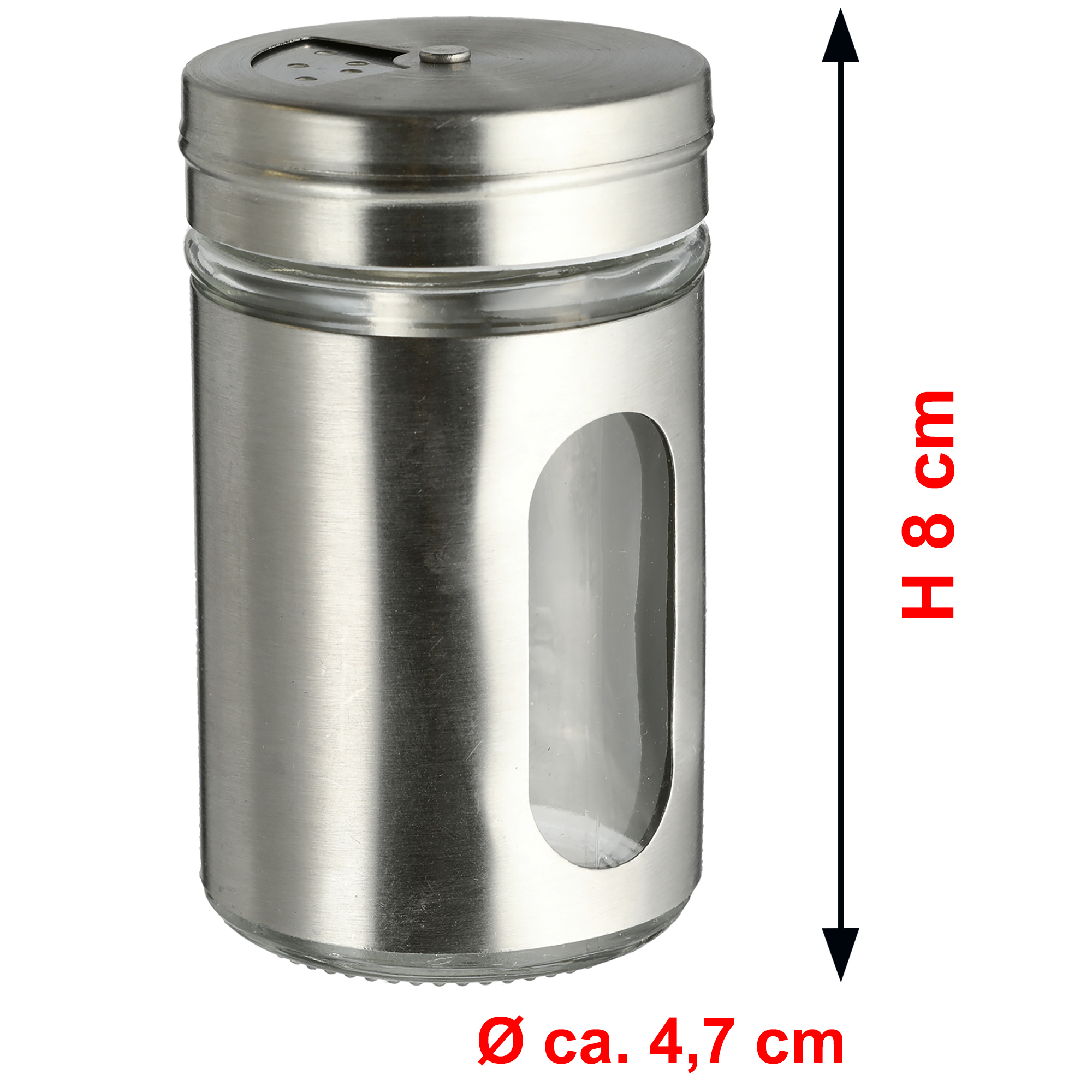 Produktinformationen "12 x Gewürzstreuer aus Glas in Edelstahlhülle H 8 cm - 100 ml"
