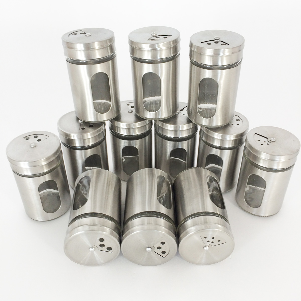 12 x Gewürzstreuer aus Glas in Edelstahlhülle H 8 cm - 100 ml