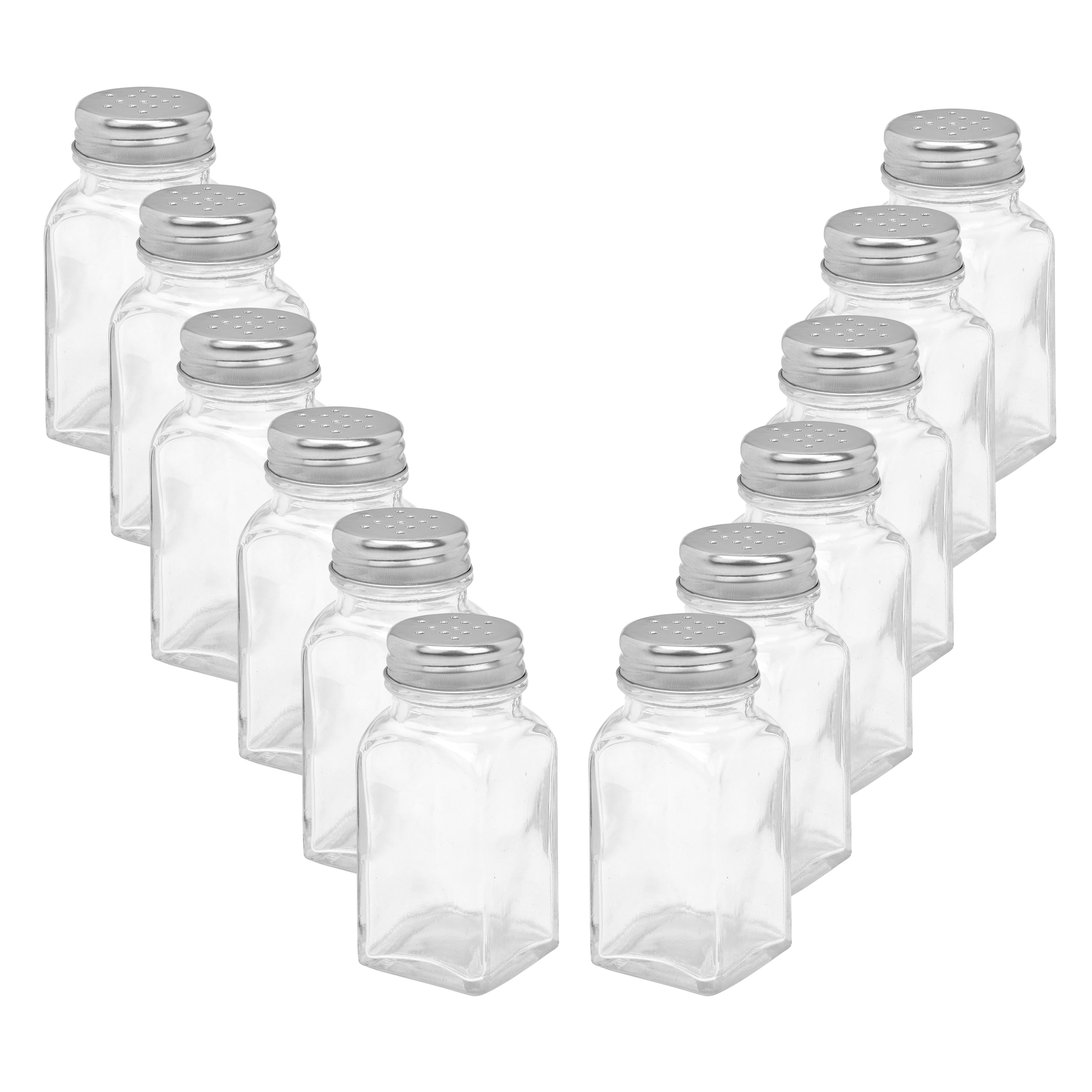 12 x Salz- und Pfefferstreuer aus Glas mit Edelstahl-Deckel
