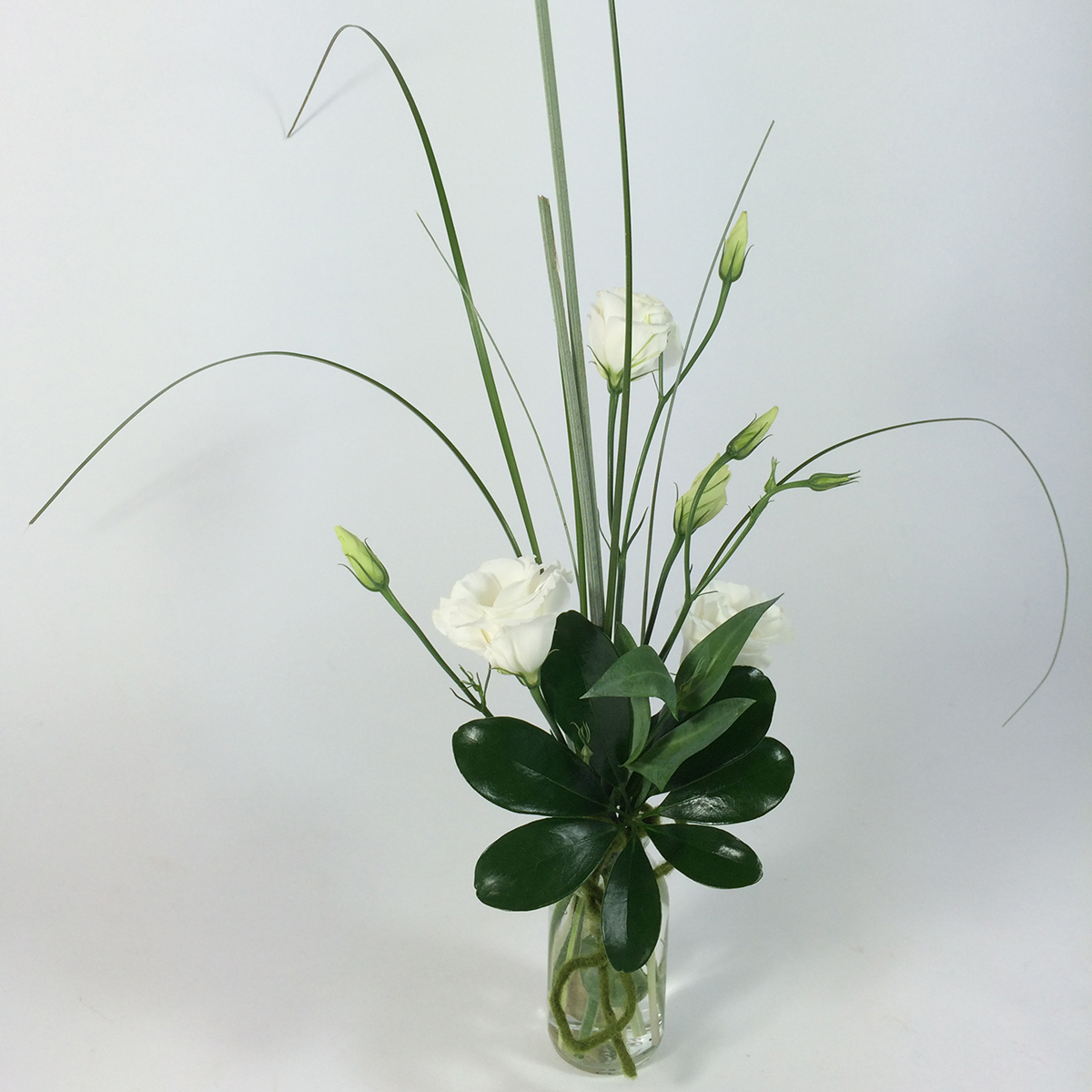 12 x Glasfläschchen - Vasen, cremefarbenes Band H 10,5 cm
