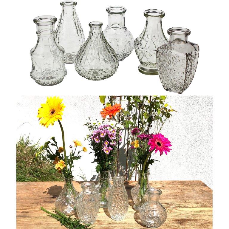 6-tlg. Set Vasen aus Glas im Vintage Look in verschiedenen Größen erhältlich