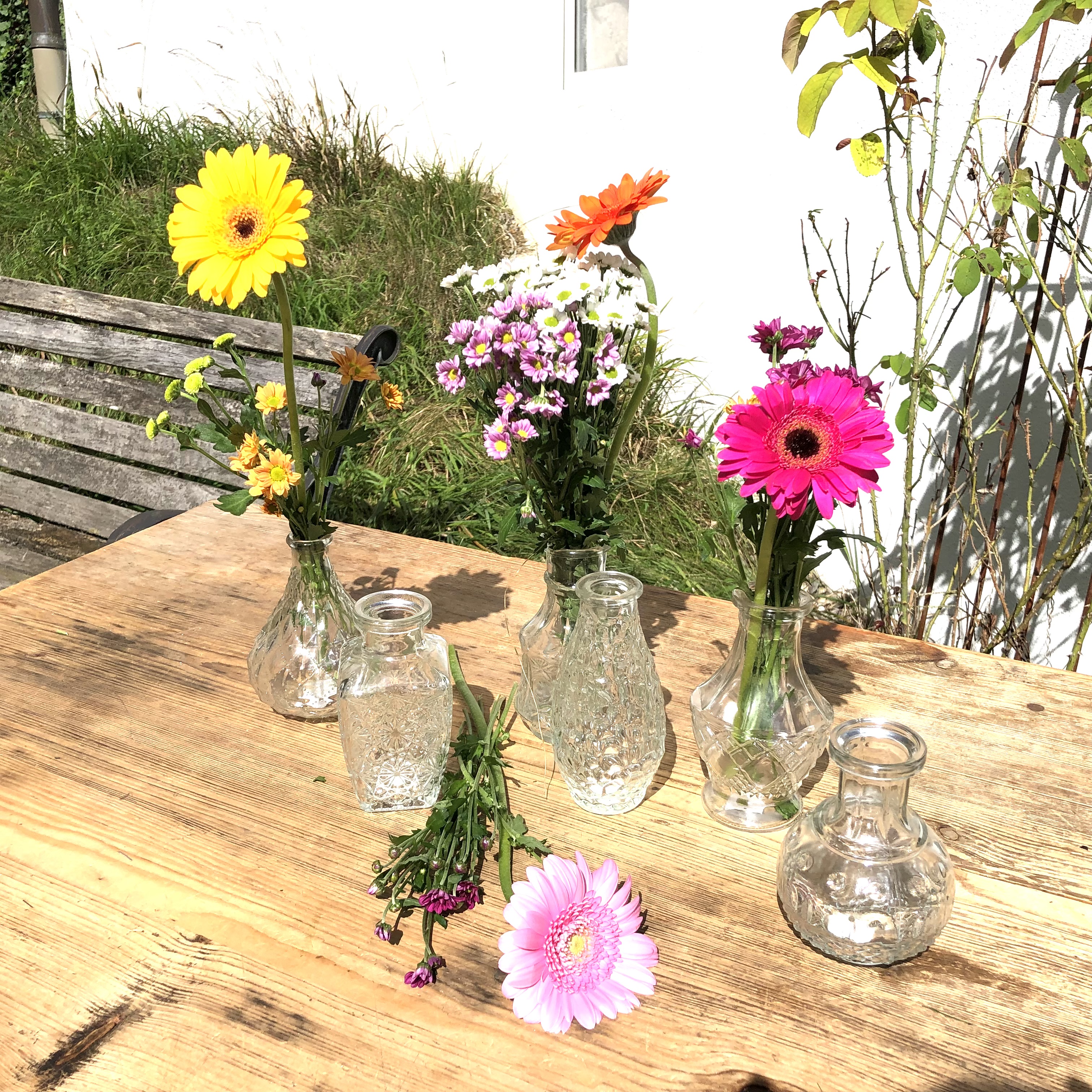Stilvolle Vasen aus Glas im bezaubernden Vintage-Look mit außergewöhnlich schönen Formen und Mustern. Mit ein oder zwei Blüten und etwas Gras oder Schleierkraut werden diese Tischvasen zum dekorativen Blickfang. Die kleinere Variante der Glasvasen hat eine Höhe von 12 - 14 cm, die größere Variante der Blumenvasen sind zwischen 14,8 bis 20 cm hoch.
