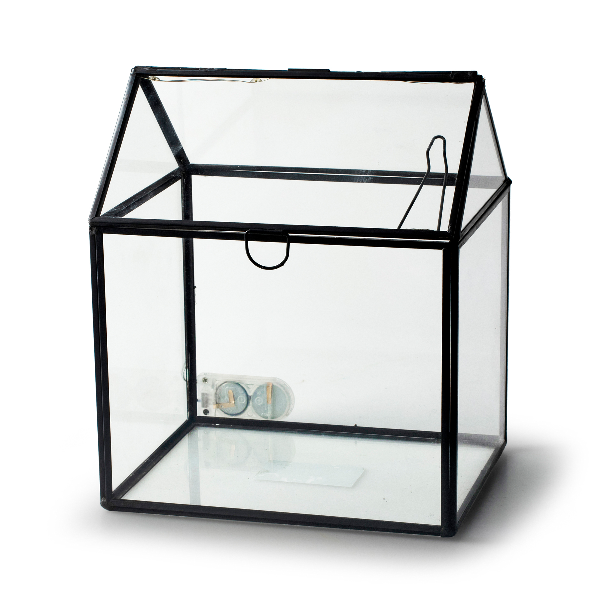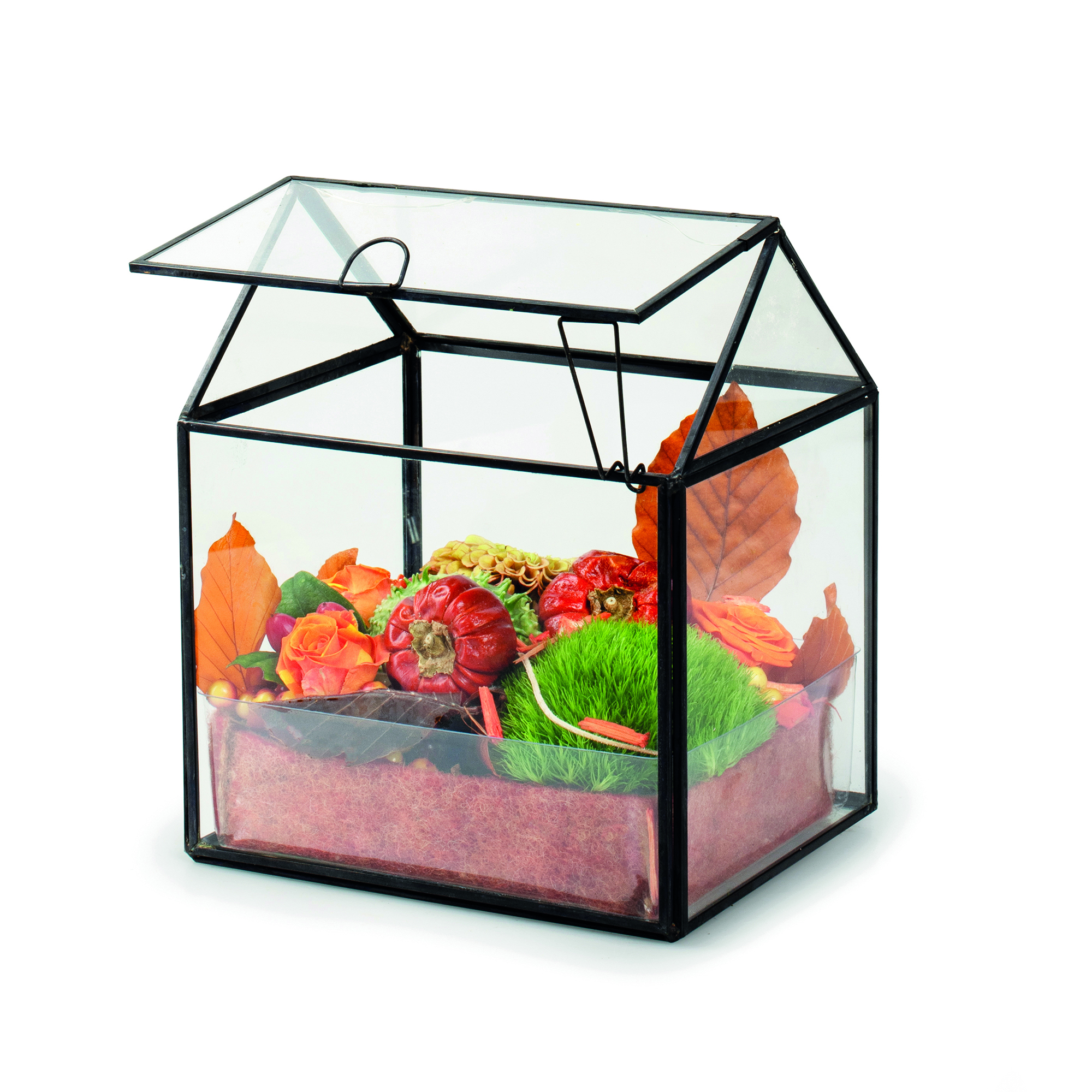 Kleines Haus aus Glas mit Deckel zum Aufklappen - Kleines Gewächshaus - 17 x 14 x 20 cm