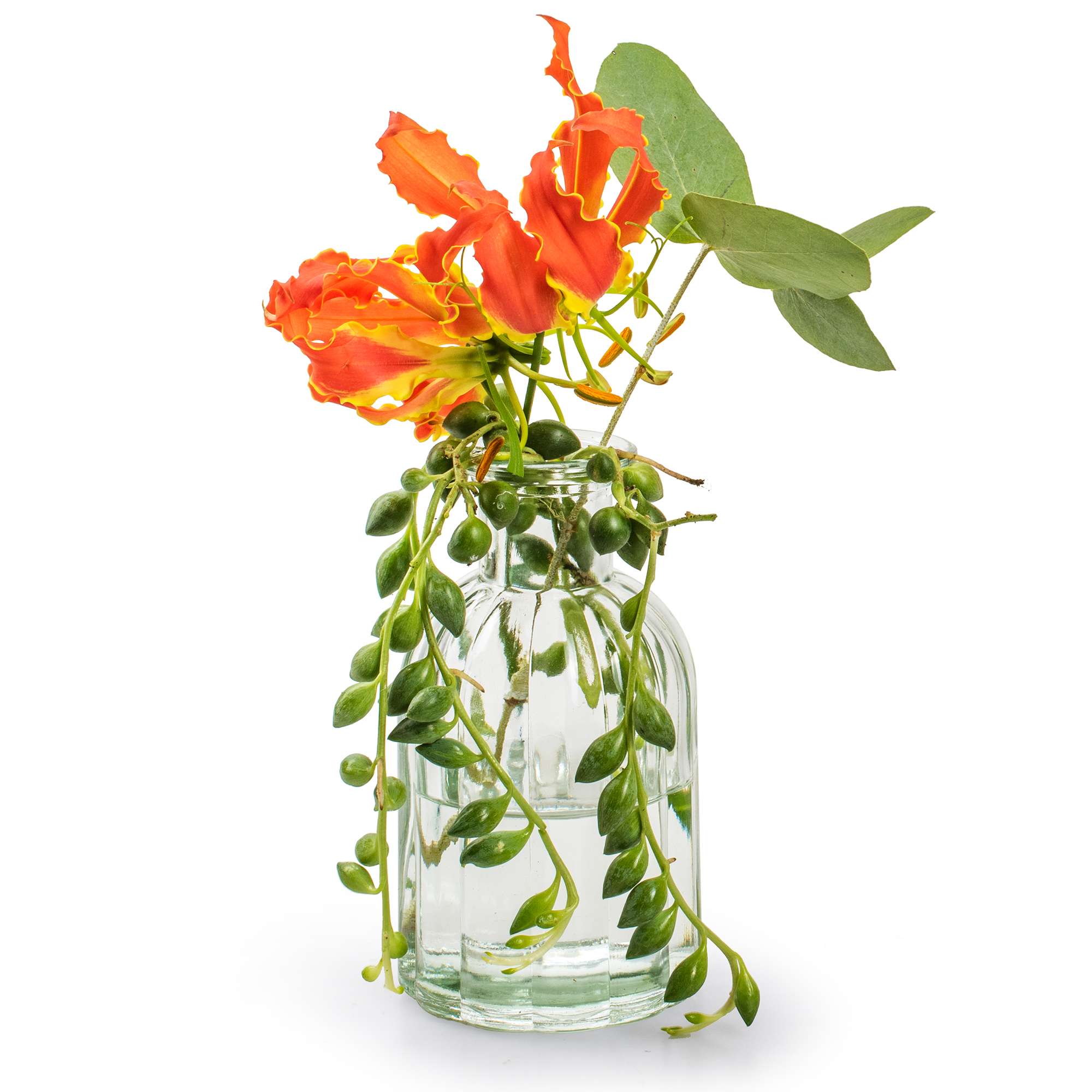 Produktinformationen "6 x Vasen aus Glas in geriffelter Optik, klar H 10,5 cm - Ø 5,5 cm"