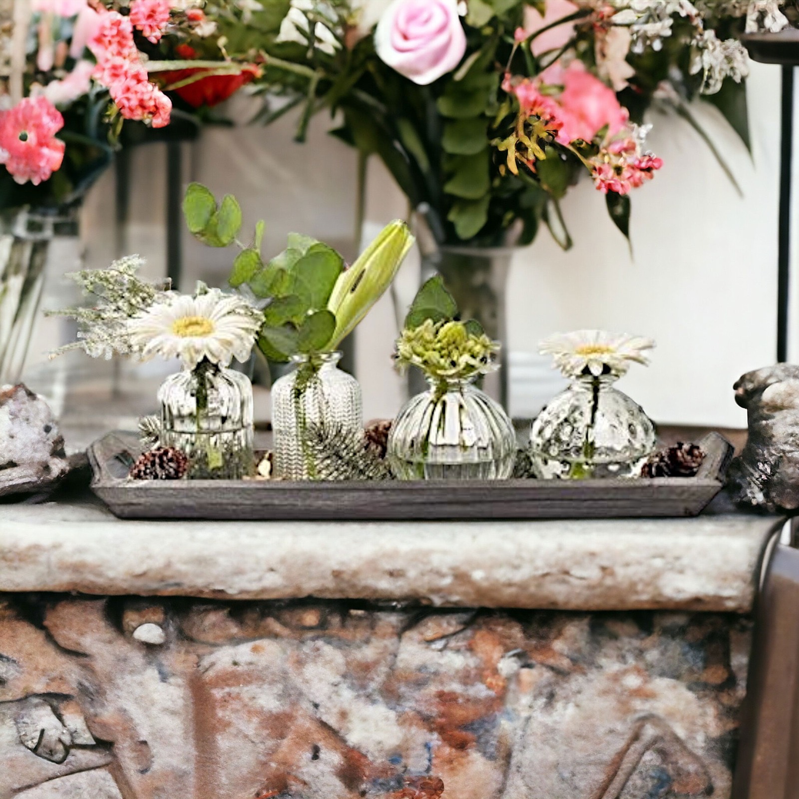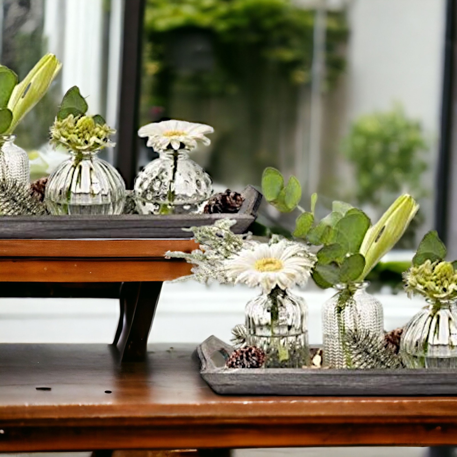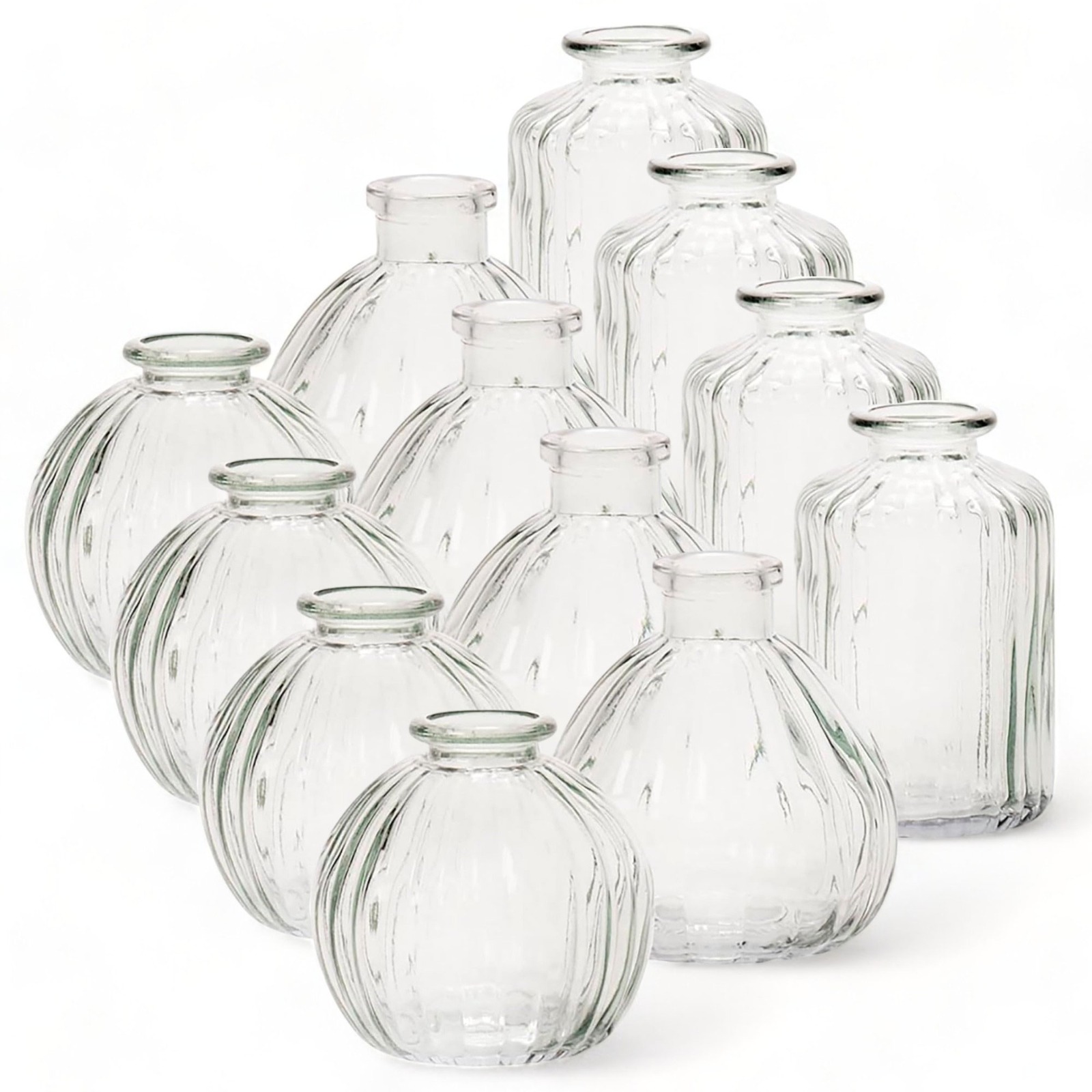 Die zarten Glasvasen verleihen jedem Raum einen Hauch von Nostalgie und Eleganz. Sie sind perfekt für alle Blumenliebhaber, die großen Wert auf ein stilvolles Ambiente legen. Mit ihrem Vintage-Look und der hübschen Glasriffelung sind sie nicht nur dekorativ, sondern auch praktisch. Die Vasen bieten einen sicheren Stand und eignen sich ideal für 2-3 Blumen. Diese bezaubernden kleinen Glasvasen sind eine stilvolle Tischdeko für verschiedene Anlässe wie Hochzeiten, Jubiläum oder Geburtstage. Das preiswerte 12er Set enthält drei verschiedene Modelle, die harmonisch miteinander kombiniert werden können. Sichern Sie sich jetzt dieses wunderschöne Set und lassen Sie Ihre Dekoration strahlen! Mit den eleganten Glasvasen bringen Sie eine zeitlose Note in Ihr Zuhause oder Veranstaltungsort. Gönnen Sie sich diese kleine Luxusnote und erfreuen Sie sich an der Schönheit dieser Vasenkreation.