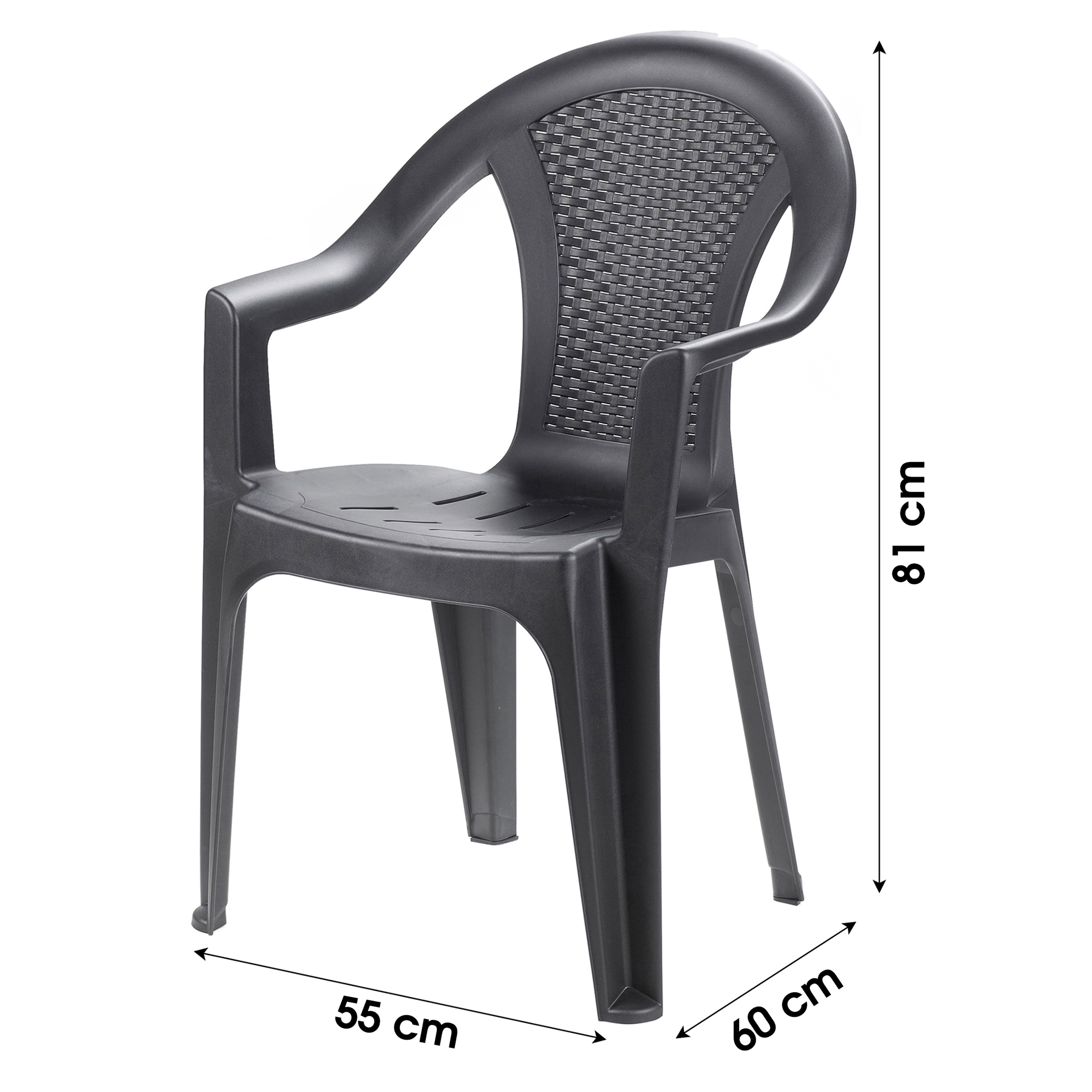 Wir präsentieren Ihnen hier einen äußerst praktischen Gartenstuhl, der aus hochwertigem und wetterfestem Kunststoff gefertigt ist. Dieser stapelbare Stuhl eignet sich perfekt für die Nutzung auf Ihrem Balkon, Ihrer Terrasse oder in Ihrem Garten. Mit seiner ansprechenden Rattan-Optik ist er nicht nur äußerst funktional, sondern auch dekorativ und fügt sich harmonisch in Ihre Außenbereiche ein. Genießen Sie entspannte Stunden im Freien auf diesem stilvollen und bequemen Gartenmöbelstück.