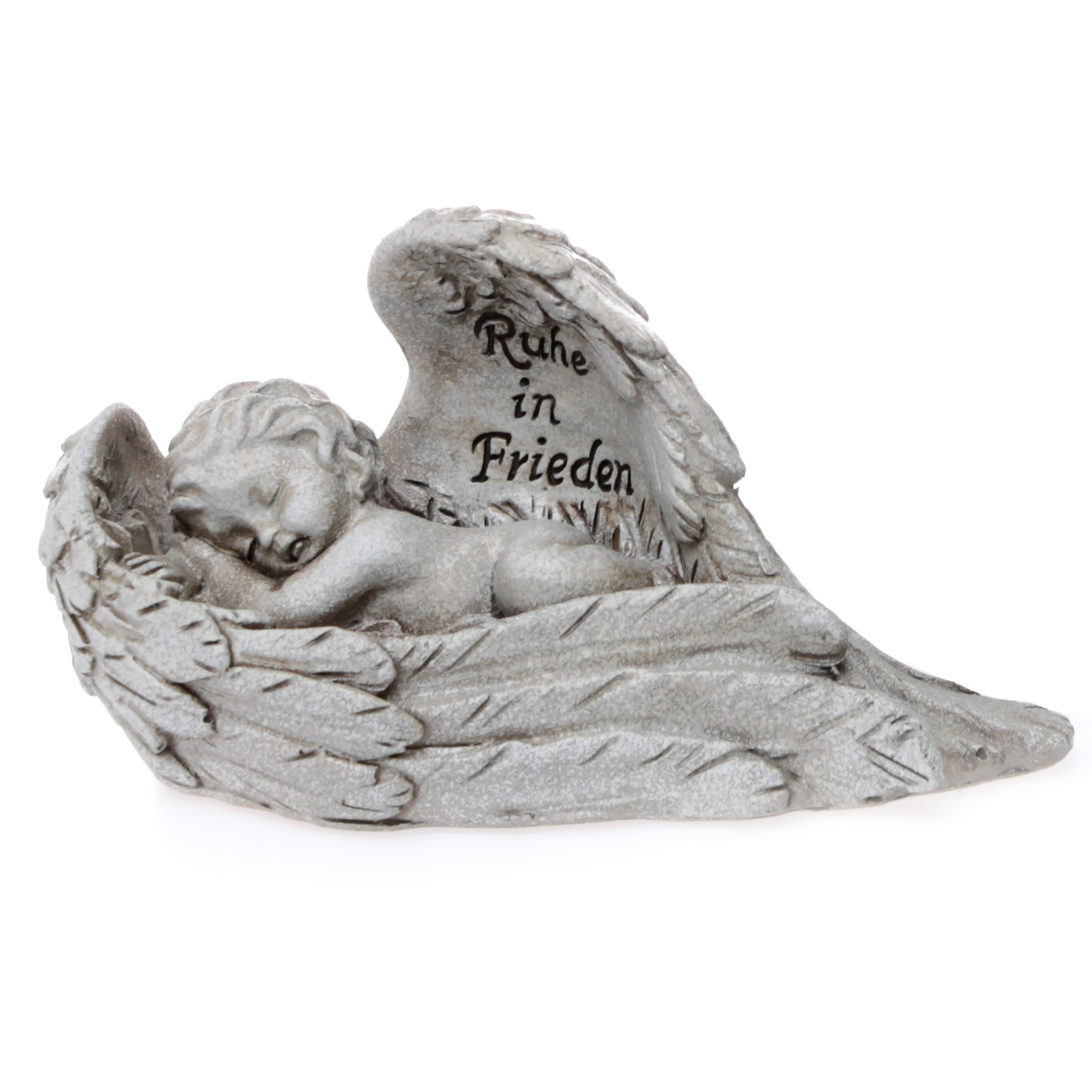 Die Engel mit den Flügeln und der Inschrift “Ruhe in Frieden” sind eine wunderschöne Grabdekoration, die in zwei verschiedenen Größen erhältlich ist. Ihre filigranen Details und die liebevoll gestalteten Flügel verleihen diesen Engeln eine ganz besondere Ausstrahlung. Sie eignen sich perfekt als stilvolles Element auf dem Grab eines geliebten Menschen, um ihm oder ihr ein würdevolles Andenken zu setzen. Auch für Ihren Vierbeiner wäre dies eine liebevolle Geste. Gönnen Sie Ihren Liebsten diese zauberhafte Dekoration und lassen Sie sie so im ewigen Frieden ruhen. Die Engel symbolisieren Schutz, Trost und Hoffnung - sie sind wie Boten des Himmels, die über das Grab Ihres geliebten Menschen wachen. Mit ihren zarten Flügeln sehen diese Engel nicht nur schön aus, sondern strahlen auch Ruhe und Harmonie aus. Ein Blick auf diese dekorativen Figuren kann tröstend sein und Ihnen dabei helfen, Ihrer Trauer Ausdruck zu verleihen. Setzen Sie also ein Zeichen der Liebe und Verbundenheit mit einem dieser bezaubernden Engelfiguren. Lassen Sie Ihre Lieben in Würde ruhen - mögen sie von Engelsflügeln beschützt werden für alle Ewigkeit.