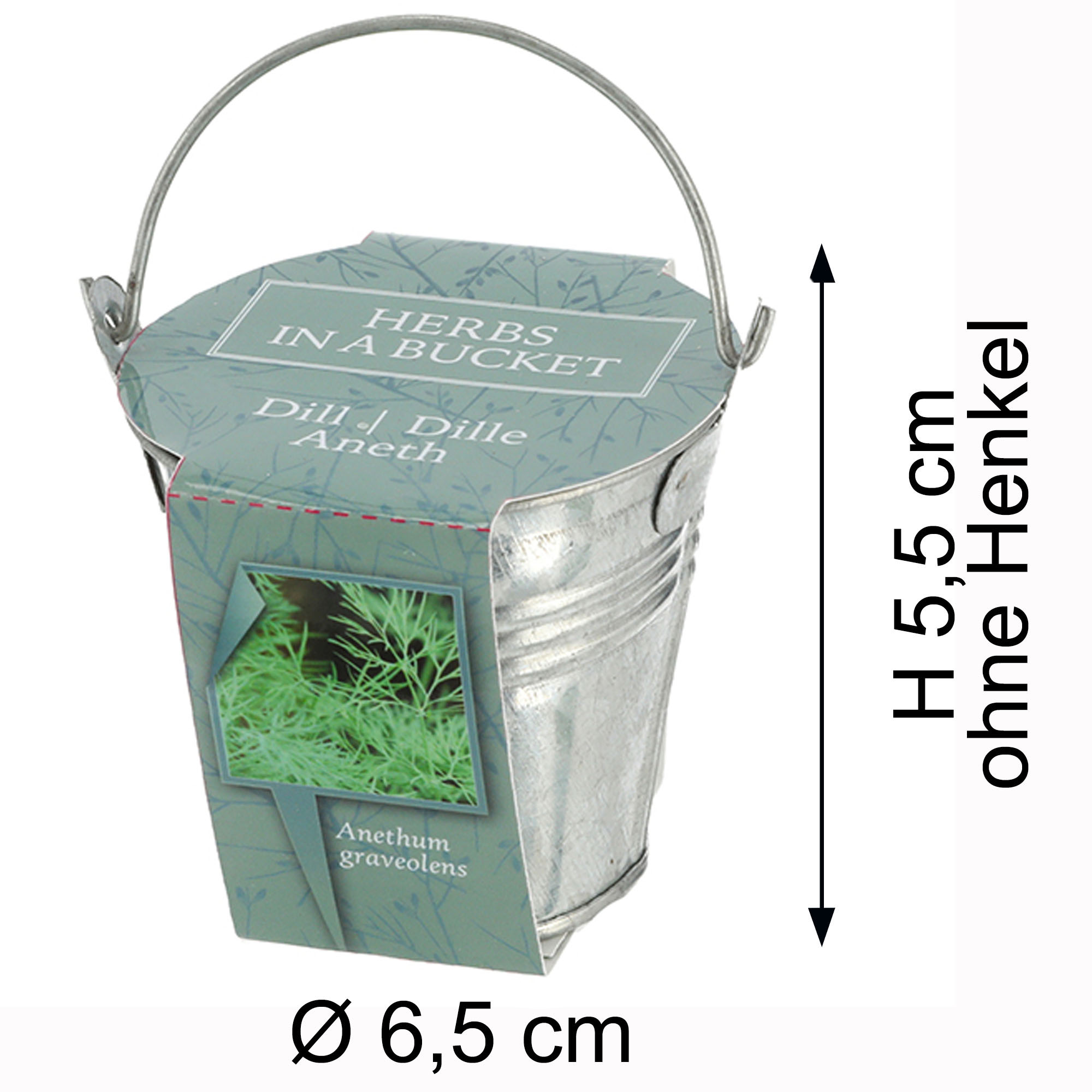 Mini Zinkeimer mit Saatgut für Ihren Kräutergarten als Anzuchtset bringt Spaß für Jung und Alt. Im Set sind neben den süßen Zinkeimern auch Samen für Basilikum, Petersilie, Dill und Schnittlauch und Krokosquellpads enthalten. Das Komplett-Set ist eine tolle Geschenkidee für jeden Anlass, ideal für Geburtstag, Jubiläum oder auch zu Weihnachten. Das Kräuterset ist durch die einfache Anzucht für Anfänger geeignet und ist auch ein schönes Geschenk-Set für Kinder und Familien.