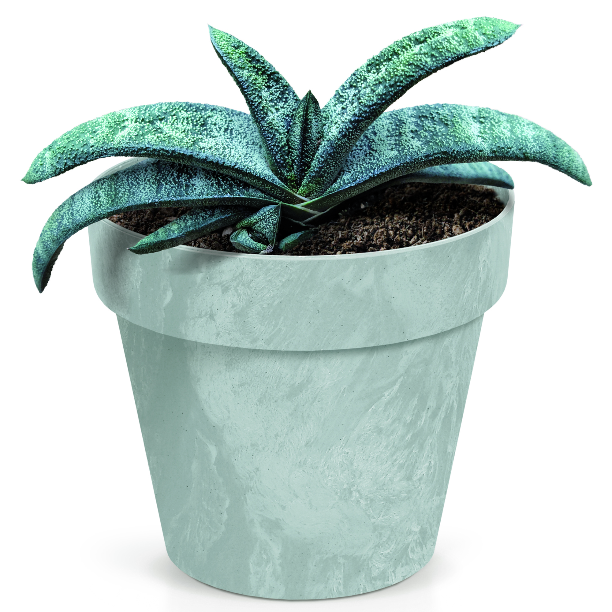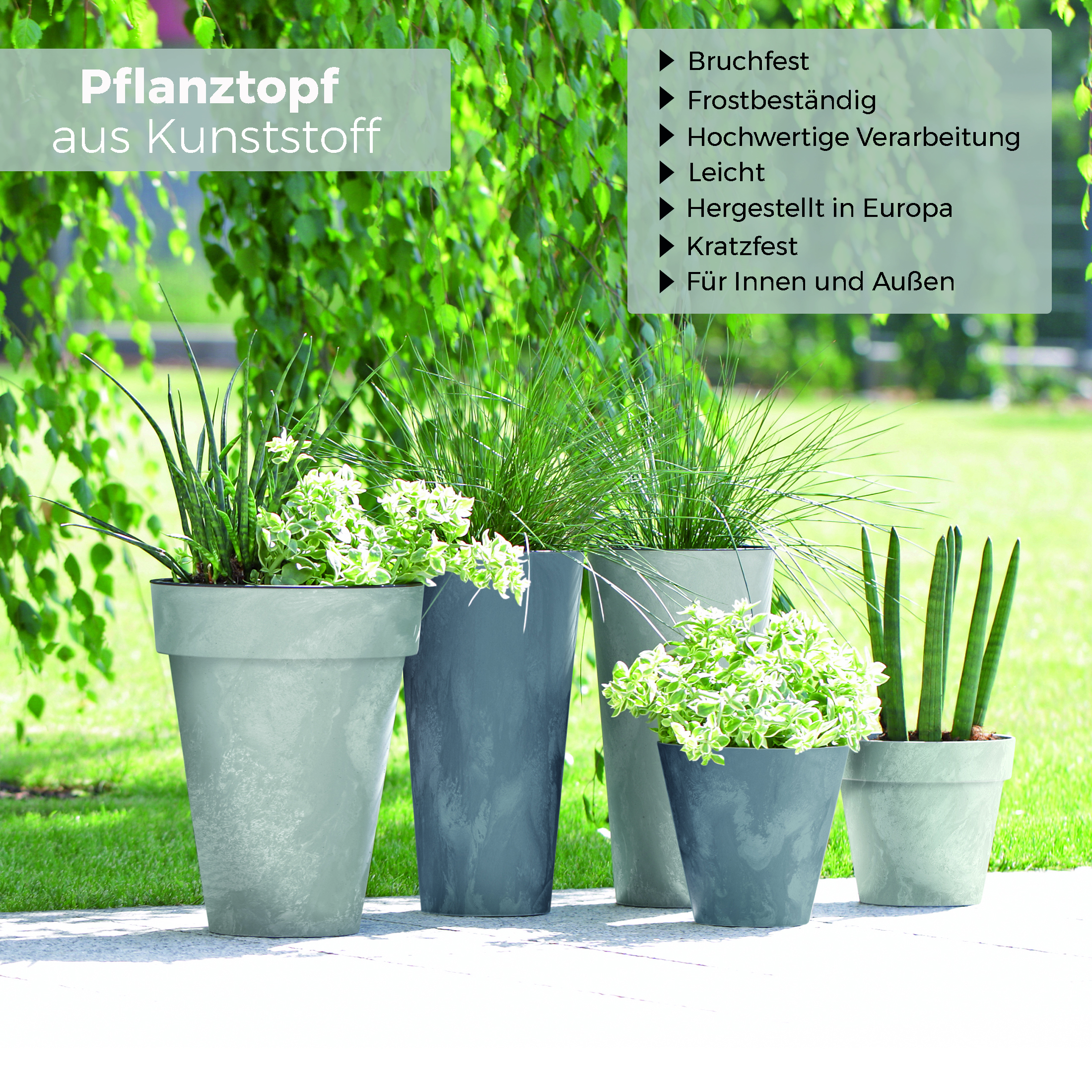 Blumentöpfe in Beton-Optik aus wetterfestem Kunststoff