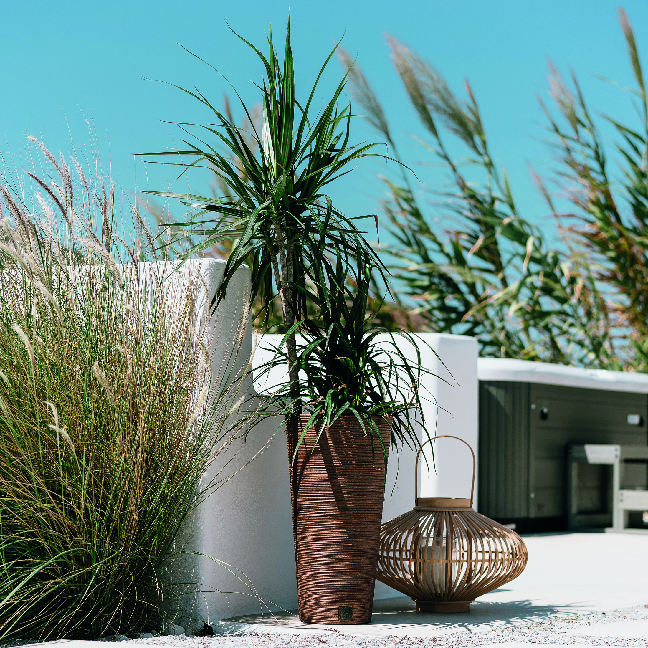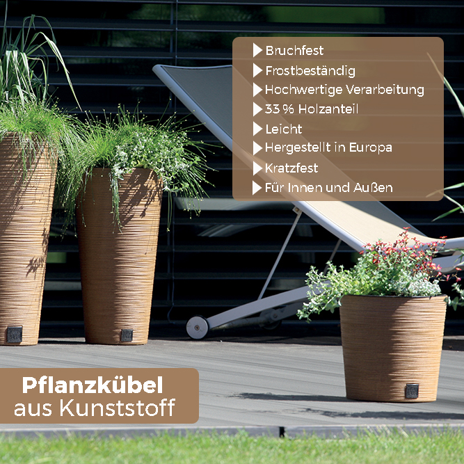 Diese Pflanzsäule sorgt für eine angenehme Atmosphäre in Ihrem Heim und Garten. Durch die verschiedenen Größen lässt er sich auch sehr schön gruppieren. Den Kunststoffeinsatz können Sie bequem herausheben, die Pflanzschale lässt sich so sehr einfach bepflanzen und Sie müssen nicht den gesamten Blumenkübel befüllen. Dadurch ersparen Sie sich das mühsame Befüllen des gesamten Blumenkübels. Das natürliche Aussehen, das durch die holzähnliche Struktur erreicht wird, verleiht der Einrichtung einen Boho-Stil. Die Blumentöpfe der Serie Furu verbinden Eleganz und Schlichtheit mit Modernität. Dank der attraktiven Farben passen sie in jeden Raum. Sie schmücken sowohl das Innere des Hauses oder Büros als auch die Terrasse oder den Balkon perfekt. Die Pflanzsäule ist nicht nur ein Blickfang für Ihr Zuhause und Ihren Garten, sondern sorgt auch für eine angenehme Atmosphäre. Diese Töpfe sind aus stabilem Kunststoff gefertigt, wodurch sie leicht, witterungsbeständig und langlebig sind. Trotz ihrer speziellen Oberfläche gestaltet sich ihre Reinigung äußerst einfach. Dank ihrer klassischen Formen sowie gedeckten Farben kommen darin gepflanzte Gewächse besonders schön zur Geltung.
