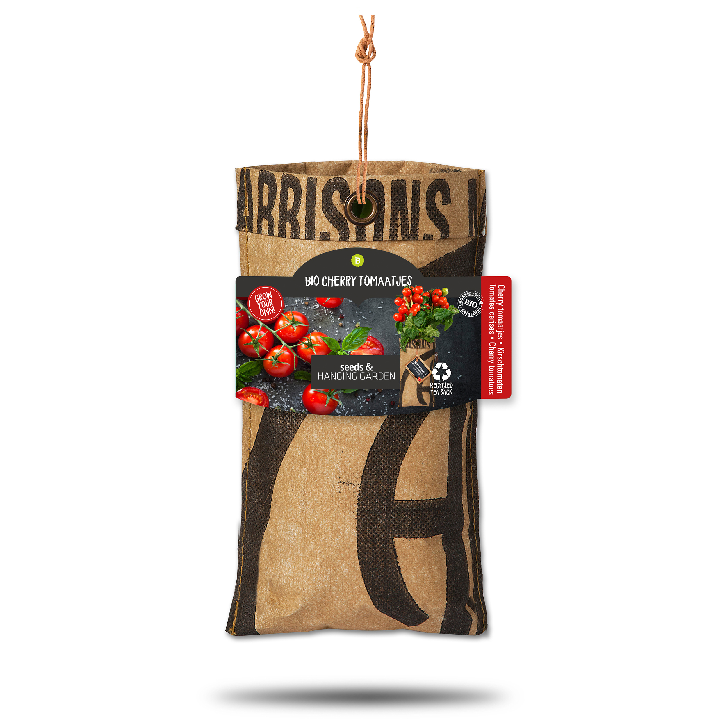 Hängende Gärten "Bio Kirschtomaten" in recyelten Teesäcken - 23 x 12 cm (H/B)