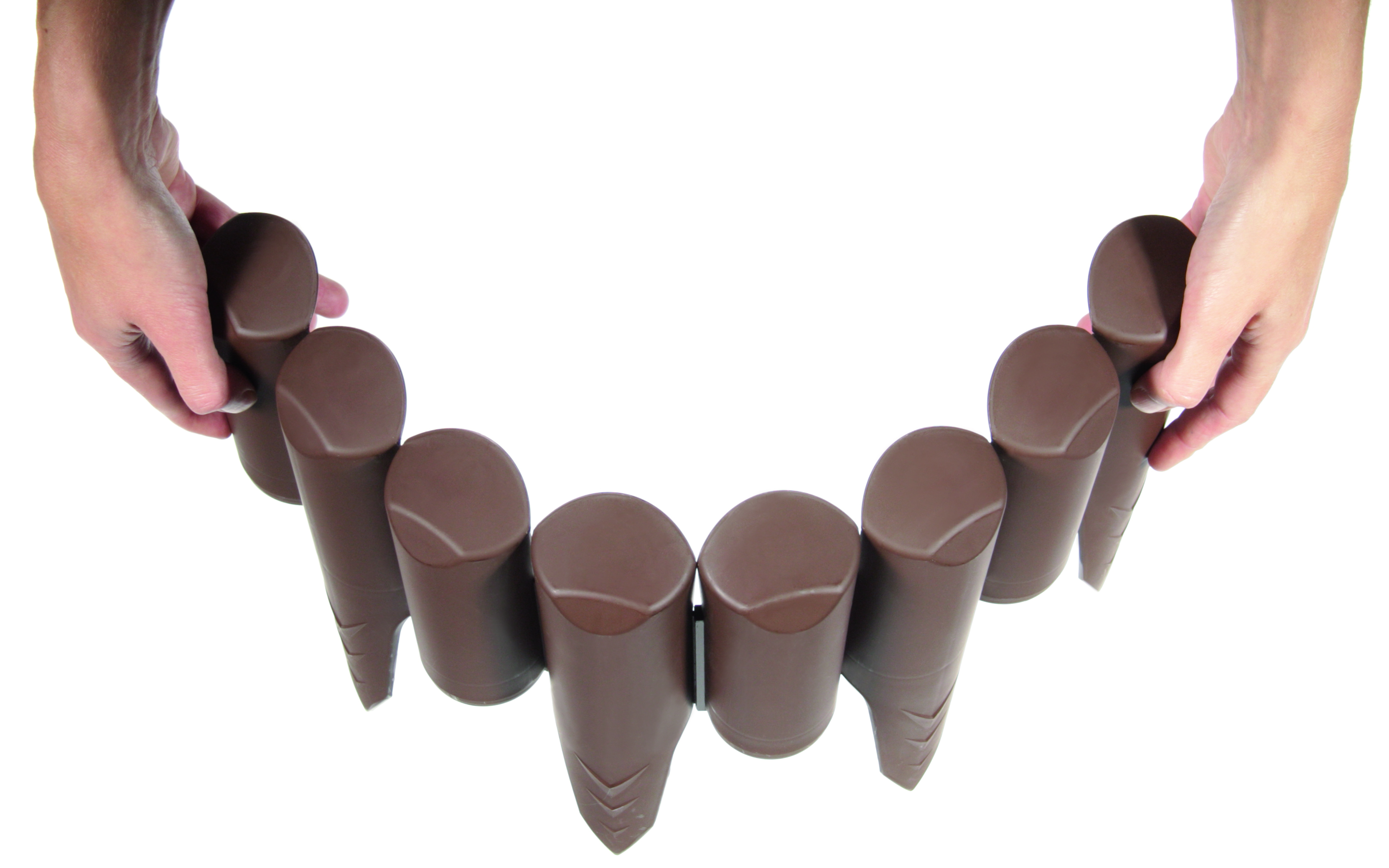 Die Beeteinfassung oder Rasenkante besteht aus strapazierfähigem und UV-beständigem Kunststoff, der äußerst robust ist und nicht leicht verformt wird. Dank seiner Pflanzenfreundlichkeit können Sie die Beeteinfassung immer wieder verwenden. Die Montage gestaltet sich spielend leicht - ohne Schneiden notwendig. Einfach die Beeteinfassung in den Boden stecken und schon ist Ihre Gartendeko im Handumdrehen fertiggestellt. Sie haben die Möglichkeit, die passende Länge nach Ihren individuellen Wünschen zu wählen und mehrere Elemente miteinander zu verbinden, sei es kreisförmig oder als eleganter Bogen. Unsere Rasenkante in Holzoptik sorgt für eine klare Grenze zwischen Blumenbeeten, Rasenflächen, Bäumen und Wegen. Sie schafft somit klare Linien sowie visuelle Ästhetik in Ihrem Garten- und Landschaftsbau. Darüber hinaus erleichtert sie das Mähen des Rasens durch ihre definierte Begrenzung. Dank dieser praktischen Lösung setzen Sie nicht nur optische Akzente in Ihrem Außenbereich, sondern schaffen auch einen pflegeleichten Rahmen für Ihre grünen Oasen im eigenen Garten. Die Rückseite der Einfassung ist hohl gearbeitet, dadurch läßt sie sich noch leichter in den Boden stecken.