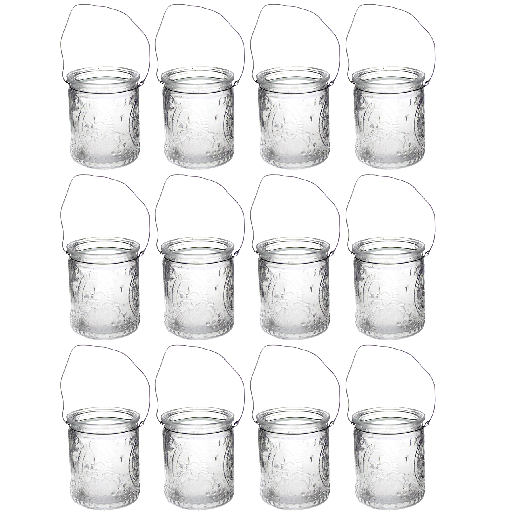 Produktinformationen "12 x Windlichter aus weissem Glas mit Henkel"