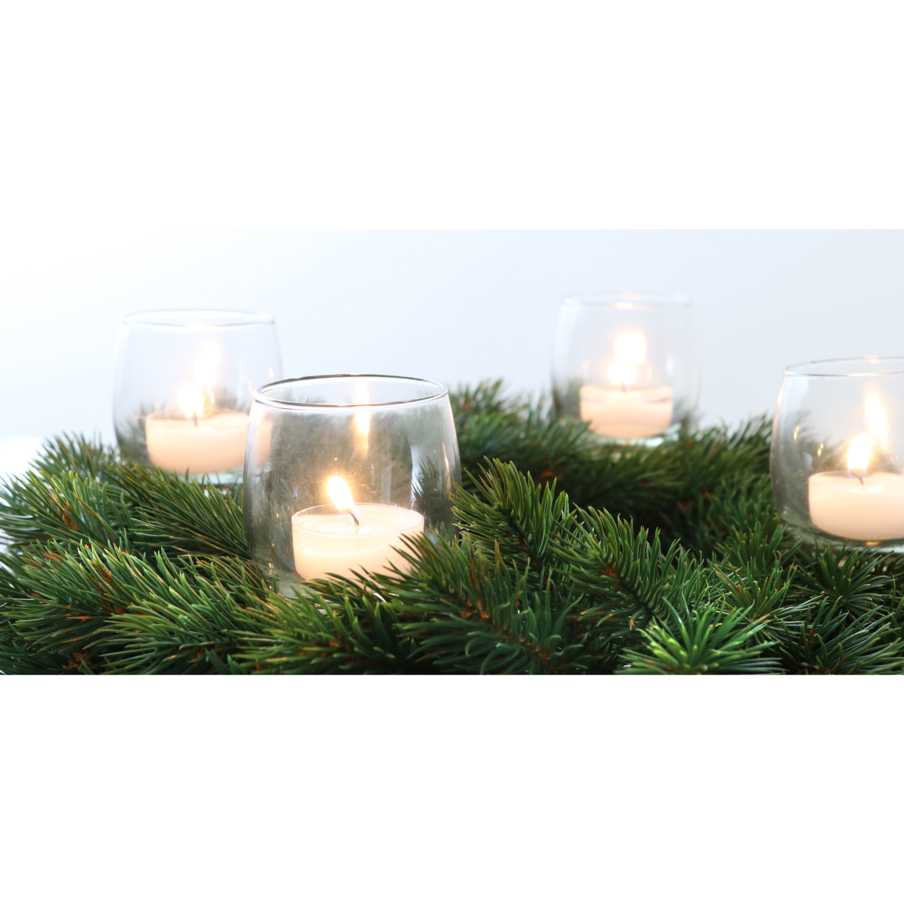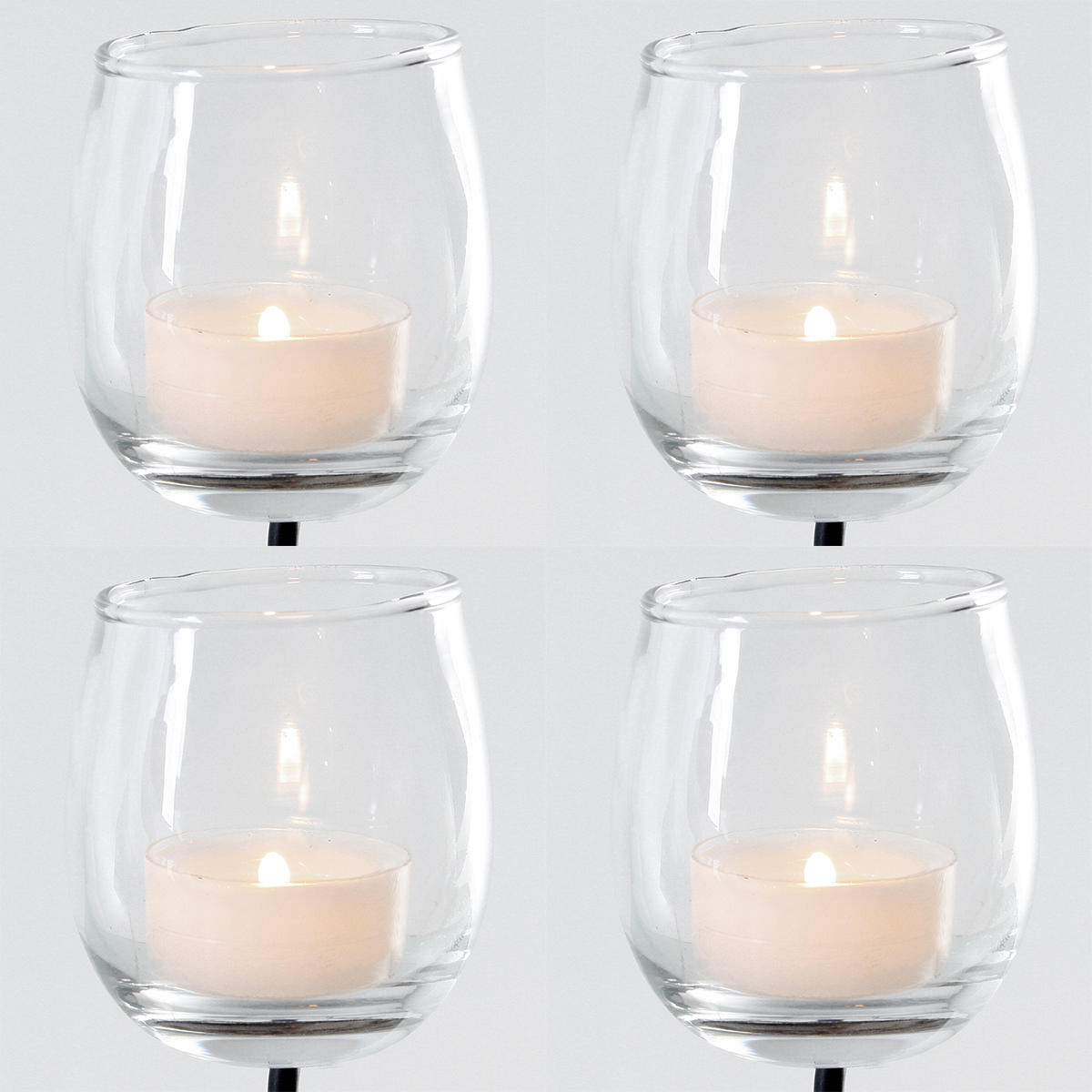 Elegante Teelichtgläser mit Metallstab für Gestecke. So wird aus jedem Kranz im Handumdrehen ein zauberhafter Teelichthalter.
