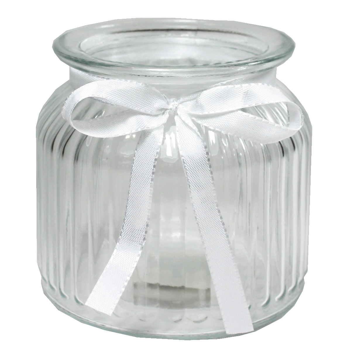 Zauberhafte Windlichter aus geriffeltem Glas mit nostalgischem Charme im Stil alter Weckgläser. Die Gläser können je nach Jahreszeit und Anlass individuell dekoriert werden. Hübsche Tischdekoration für unzählige Gelegenheiten. Mit Sand und Muscheln wird das Windlicht zur maritimen Deko, im Winter mit kleinen Kugeln zur stilvollen Adventsdeko. Selbstverständlich eignen sie sich auch als Vasen im Landhausstil. Im Lieferumfang sind für Sie gratis Dekobänder aus weißem Taft dabei, diese liegen als Meterware bei, somit sind Sie in Ihrer Gestaltung völlig frei.