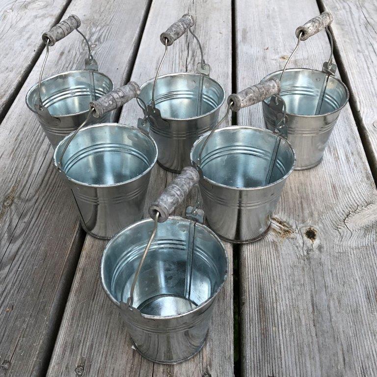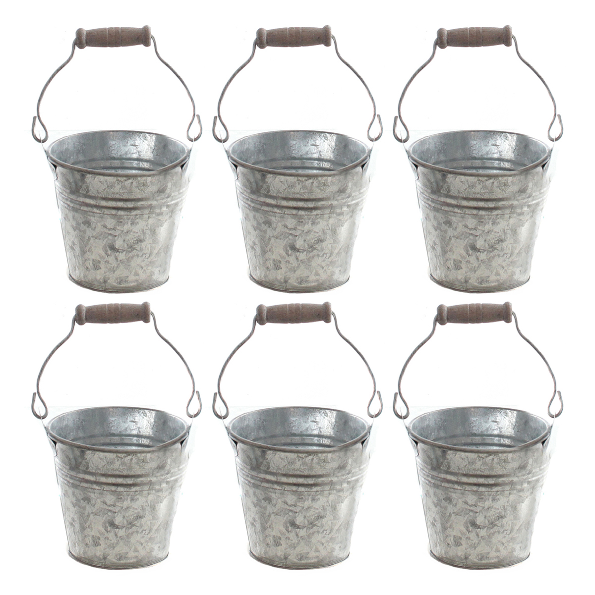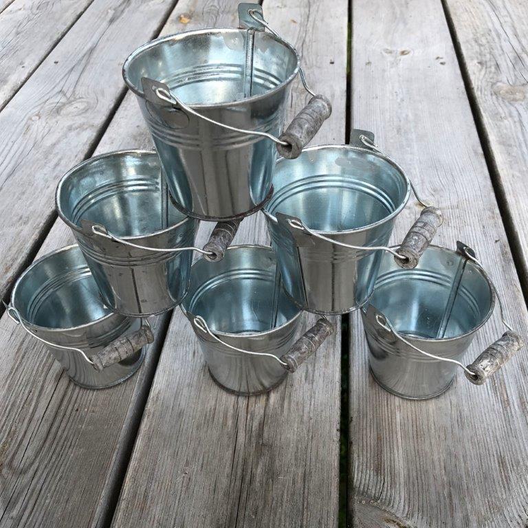 6 x Kleine Metalleimer mit Henkel, verzinkt H 8 cm