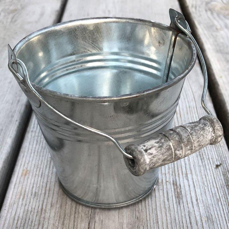 Süsse, kleine Metalleimer mit Henkel und Holzgriff in verzinkter Ausführung. Ideal z. B. als kleine Übertöpfe für Ihre Tischdeko. Mit Sand und Teelicht wird der niedliche Mini- Eimer im Handumdrehen zum Windlicht. Sehr variabel einsetzbar.