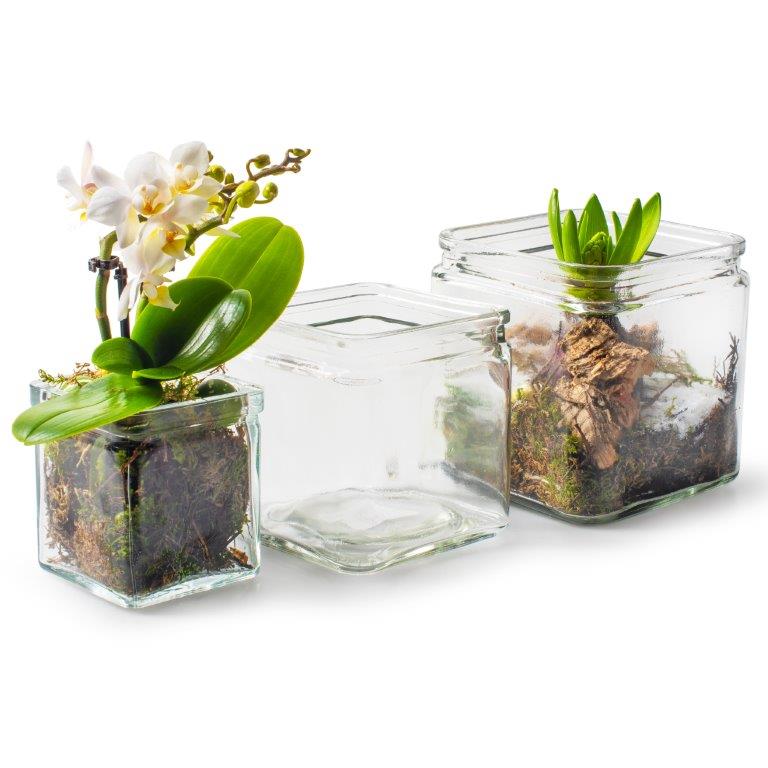 Massive Glaswürfel in zeitlos schönem Design als Windlicht- und Teelichthalter. Die Windlichter können je nach Jahreszeit auch saisonal dekoriert werden. Durch die Größe nicht nur für kleine und große Teelichter sondern auch für kleinere Kerzen ideal. Mit einer hübschen Pflanzen- und Blumendeko garantiert ein Blickfang.