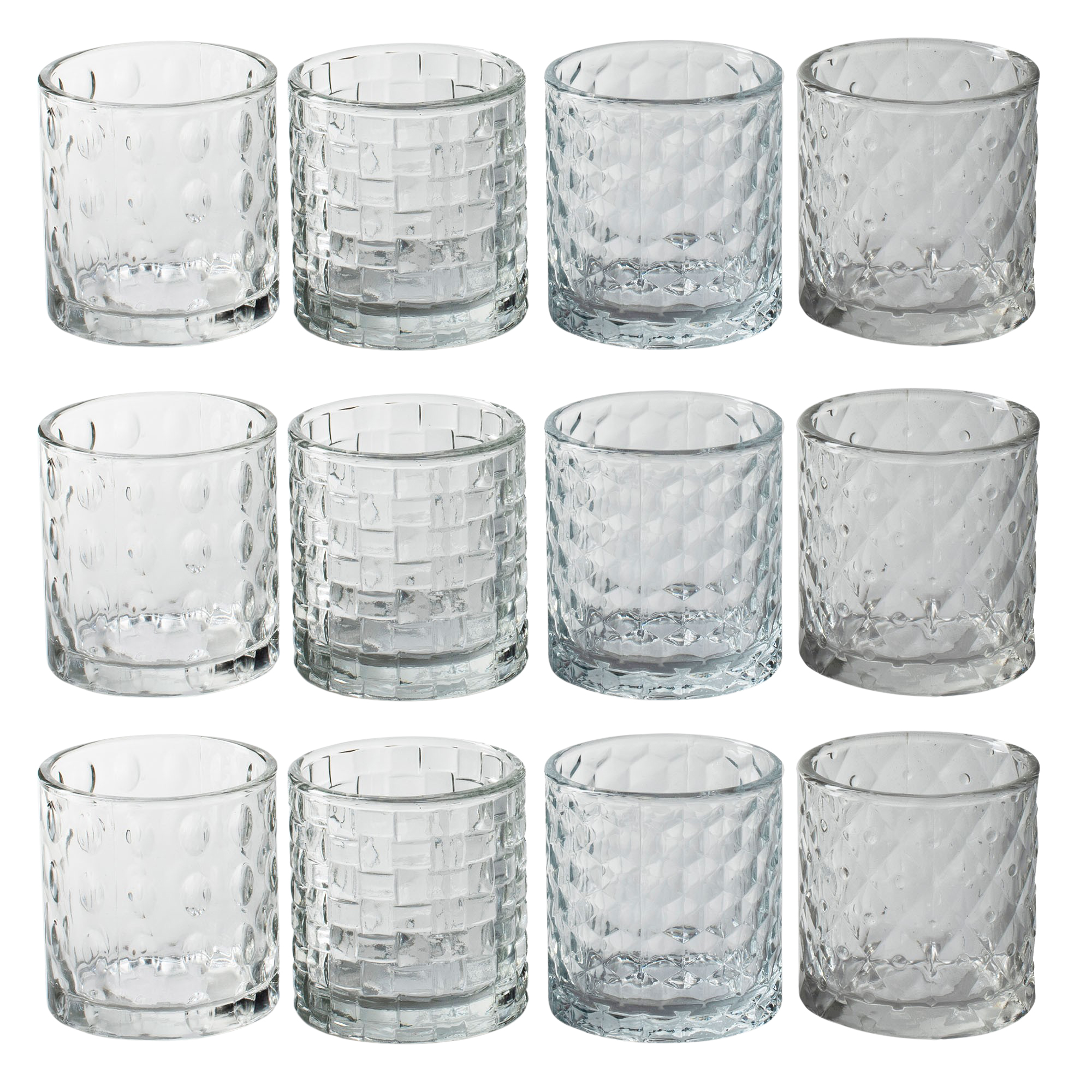 12 x Teelichtgläser mit stilvoller Musterung H 7,5 cm - Ø 7 cm