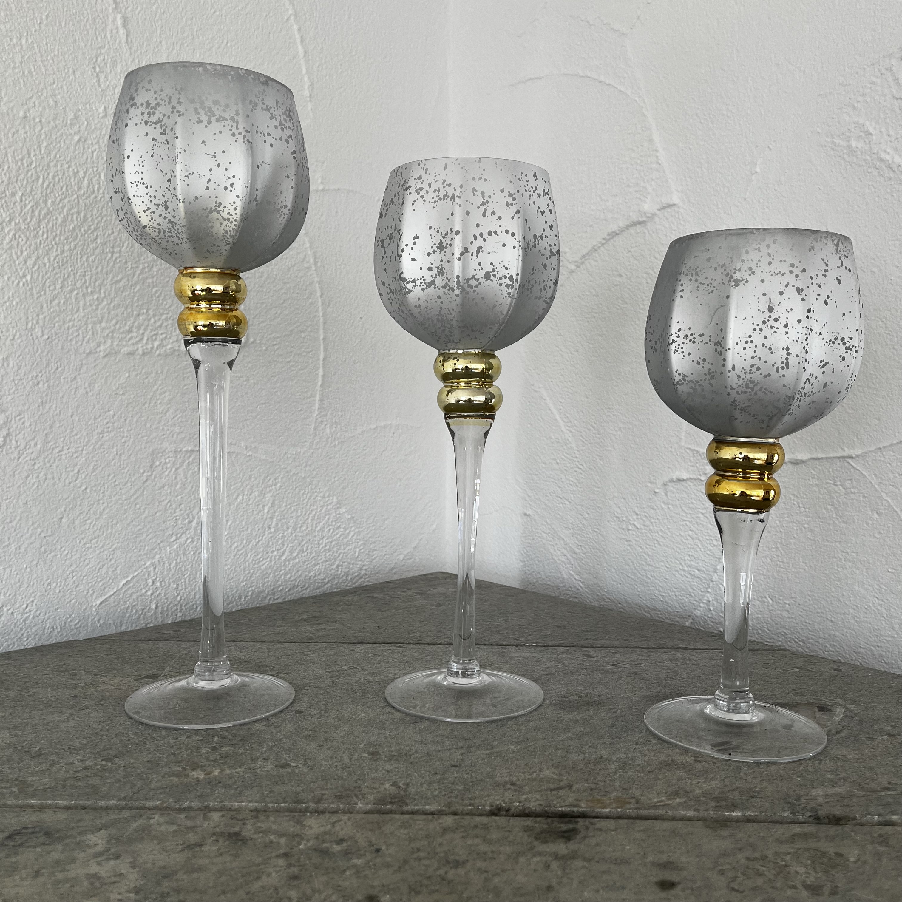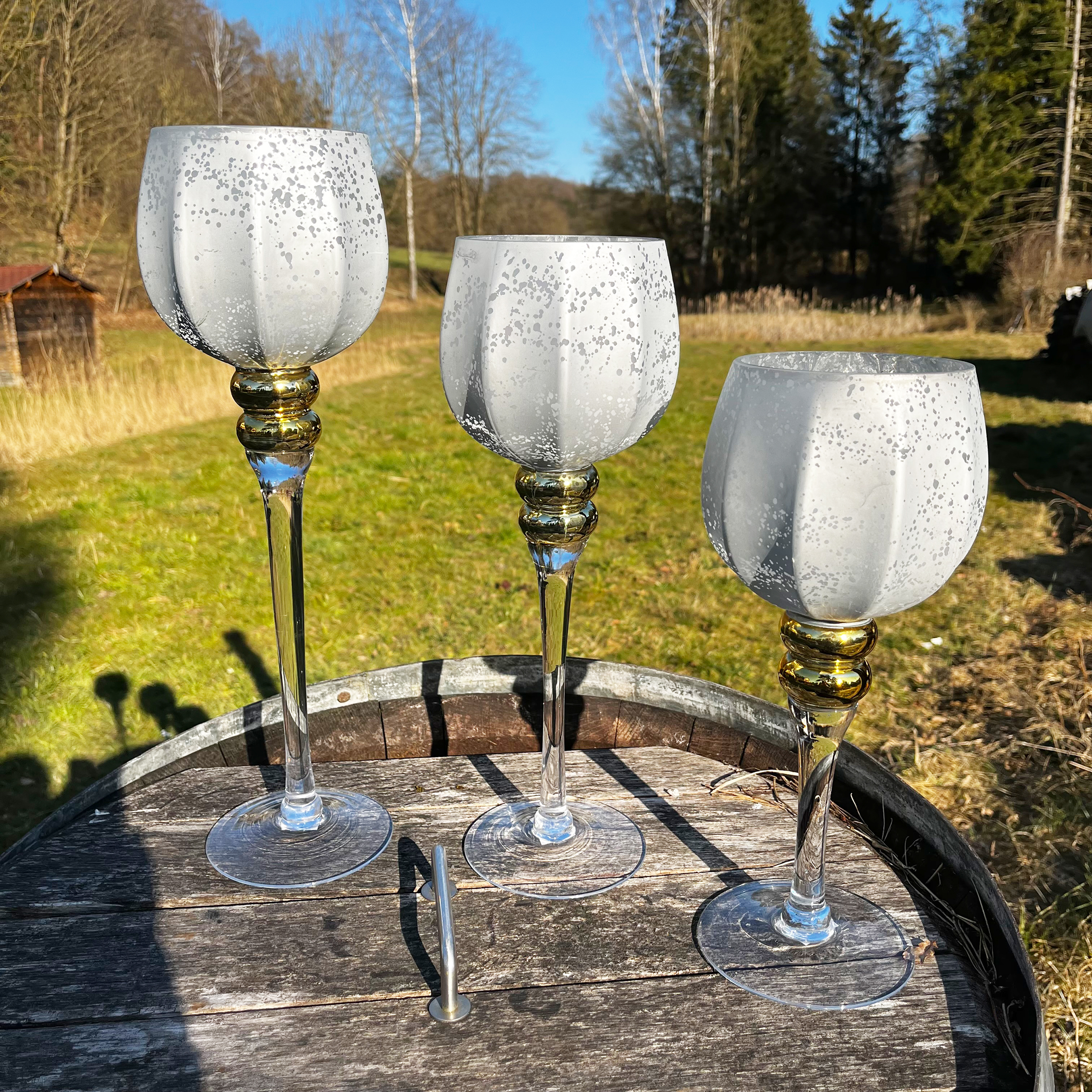 3-tlg. Set Windlichter auf Fuß - Teelicht Kerzenhalter Glas
