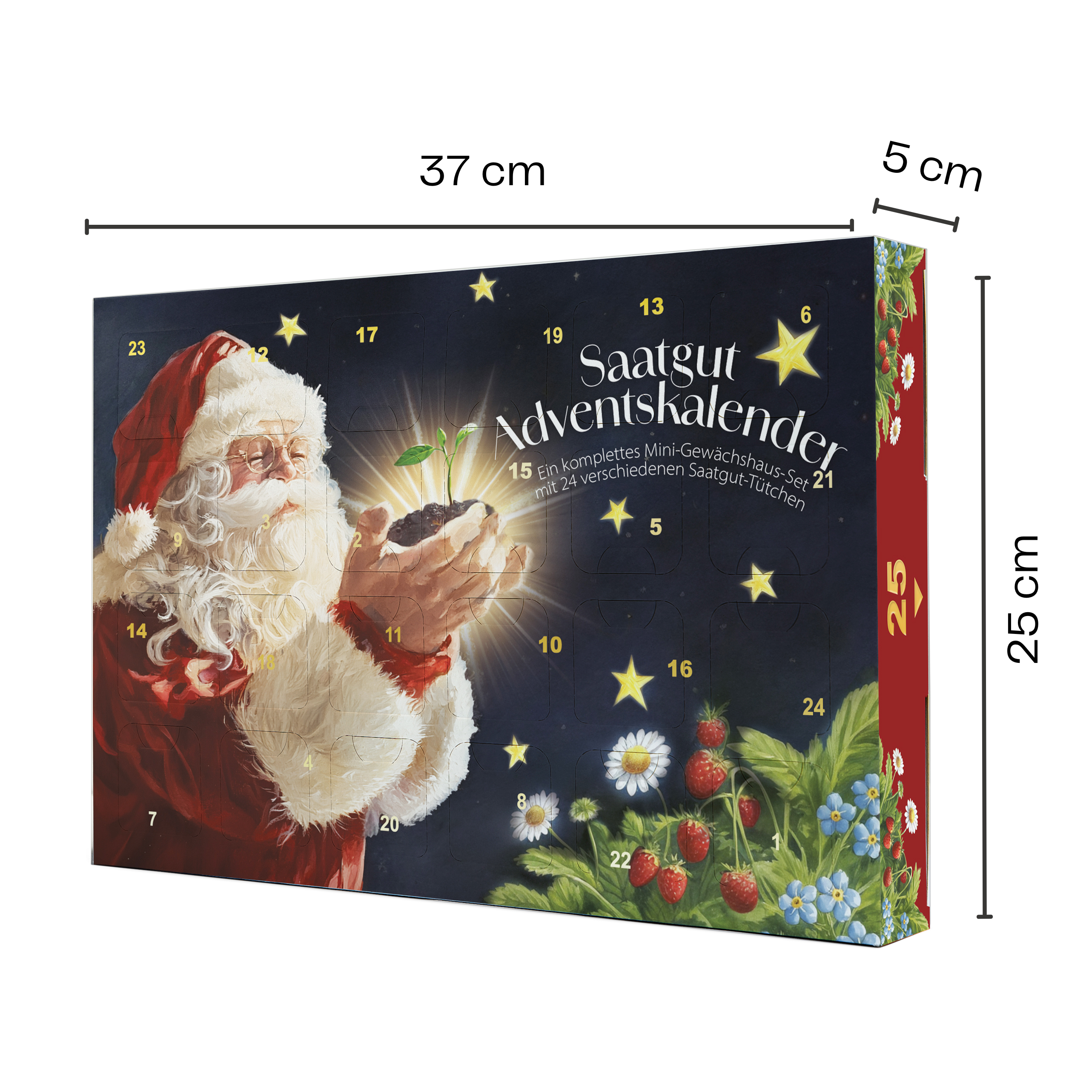Adventskalender - 24 Samen & komplettes Gewächshaus "Weihnachtsmann & Licht"