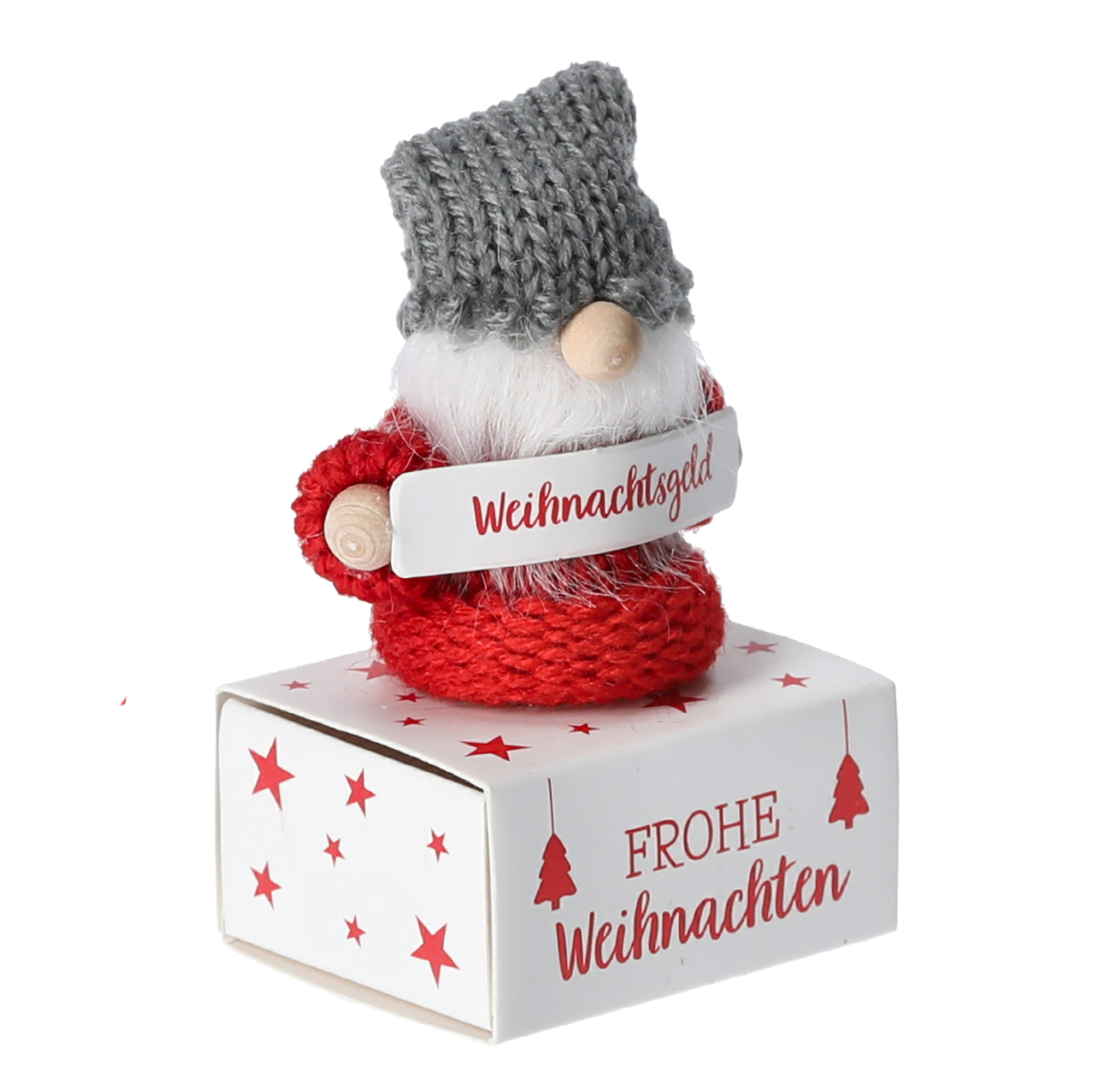 Süße kleine Wichtel mit Aufschrift "Weihnachtsgeld" auf niedlicher Box aus Pappe als ideale Verpackung für Geldgeschenke. Geldgeschenke sind äußerst beliebt, man muss weder einen Kassenbon aufheben noch was umtauschen, auch gibt es keine enttäuschten Gesichter.